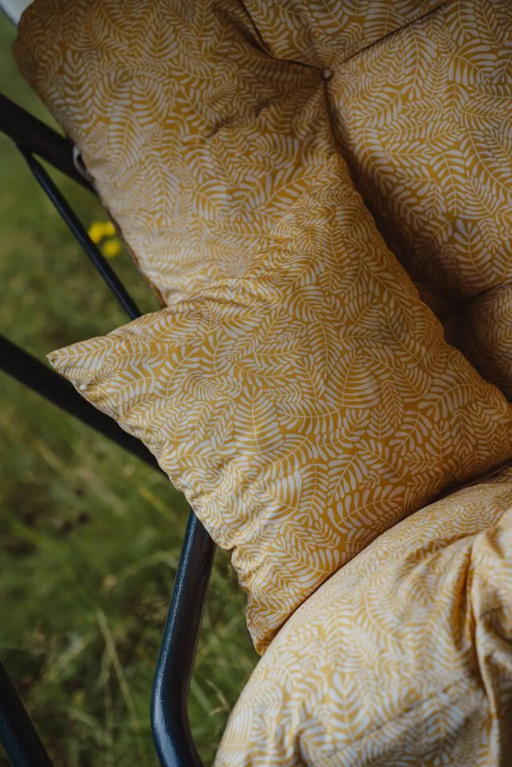 Keltainen Fern dance pehmustesarja Varaxin kolmen istuttavaan De Luxe/Monica/Suvi keinuun korkealla selkänojalla. Istui…