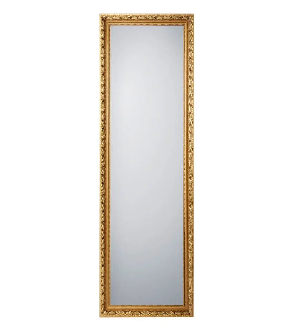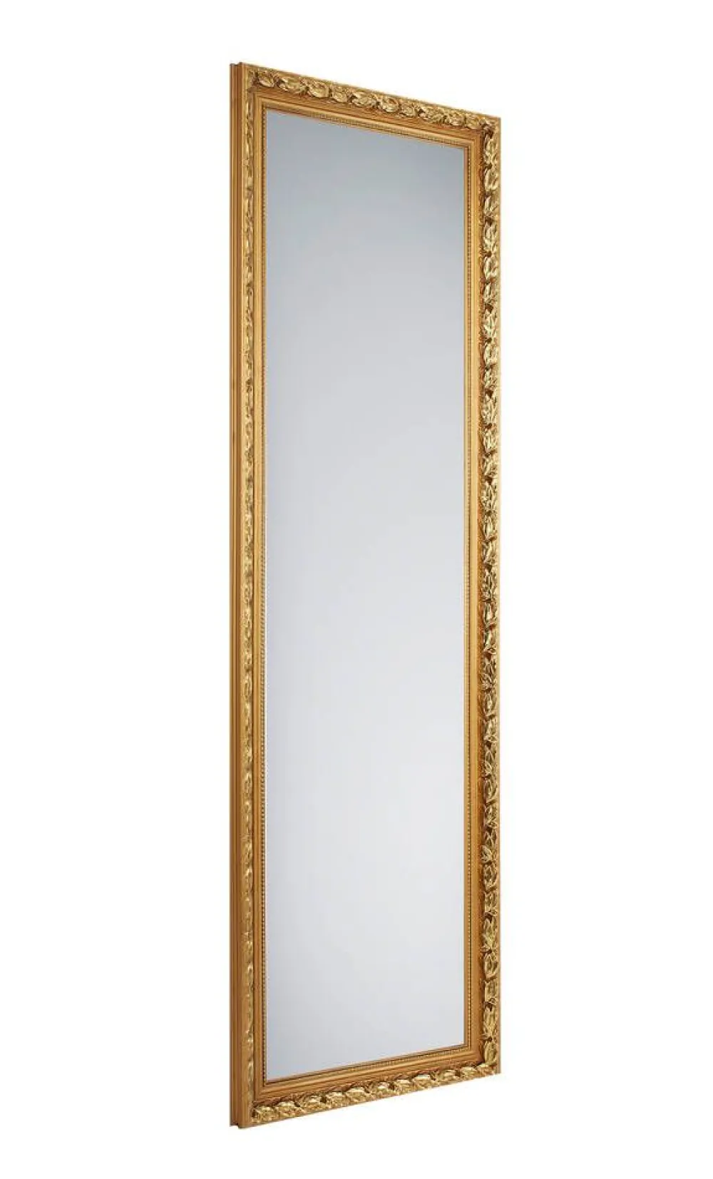 Näyttävää Tanja-peiliä kehystää kaunis lehdin kohokuvioitu koristekehys. Peilin kultainen sävy ja kuviointi luov…