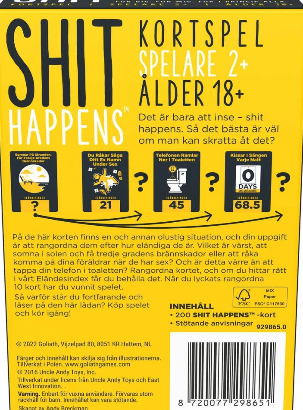 Brutaalinhauska partypeli, jossa tosielämän karmeita tapahtumia pistetään oikeaan järjestykseen. Kumpi on kamalampa…