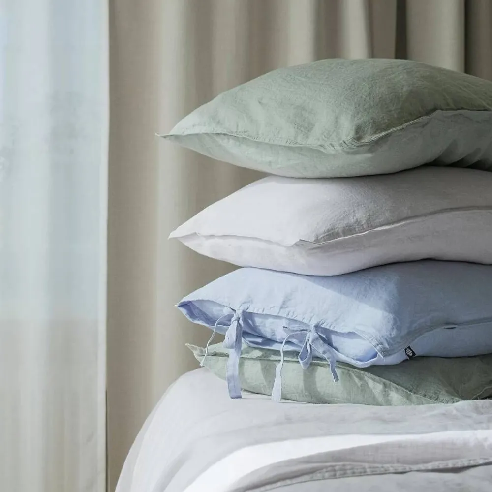 | Hienosti viimeistellyissä pussilakanoissa ja tyynyliinoissa on kaksoistikkaukset ja tyynyliinan reunassa solmittavat nauhat |