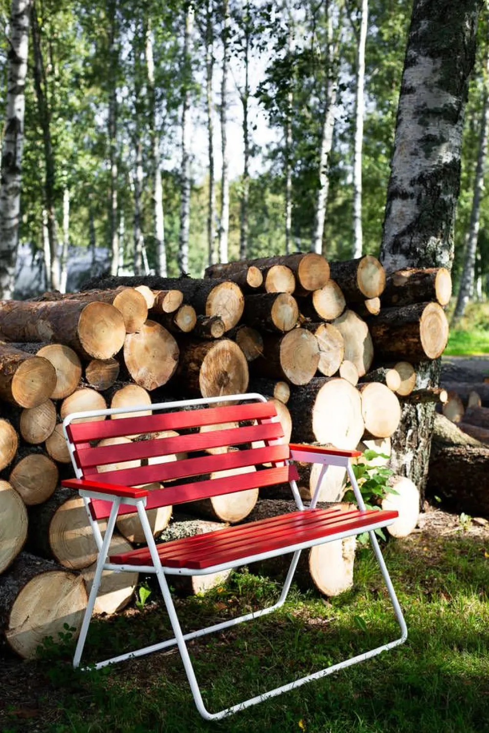 | Materiaali:Pulverimaalattu teräsputkirunko, puuosat punaiseksi maalattua mäntyä |