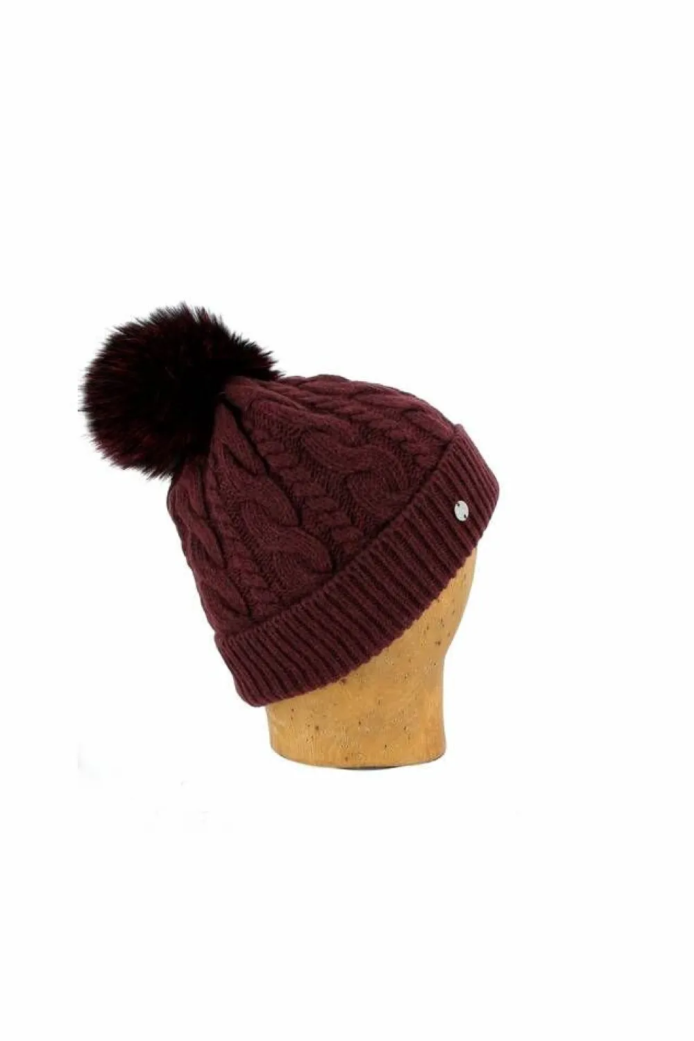 Ajattoman klassinen palmikkoneulepipo tekokarvatupsulla. Siisti ja miellyttävän tuntuinen villa-cashmir-sekoitteinen m…