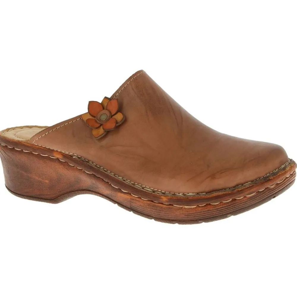 Umpikärkiset pistokkaat ruskealla nahkapinnalla. Pehmustettu sisäpohja lisää käyttömukavuutta.Lisää tietojaPehmu…