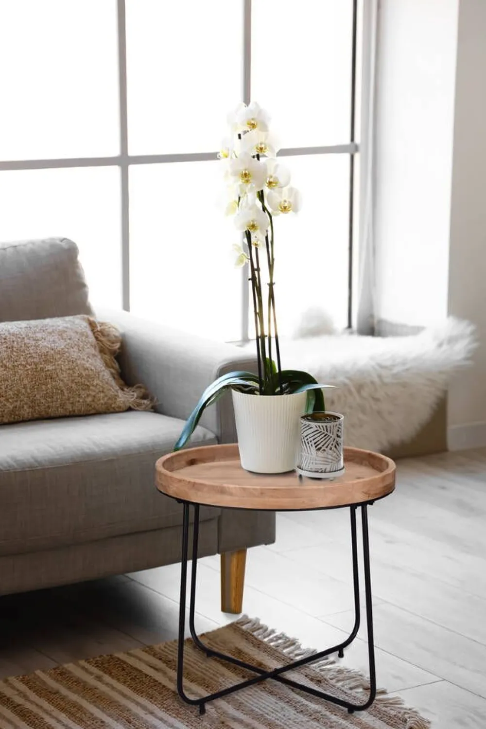 Jette-pöydän kaunis puupintainen pöytätaso ja raamikkaat mustat metallijalat luovat tyylikkään yhdistelmän. Kontr…