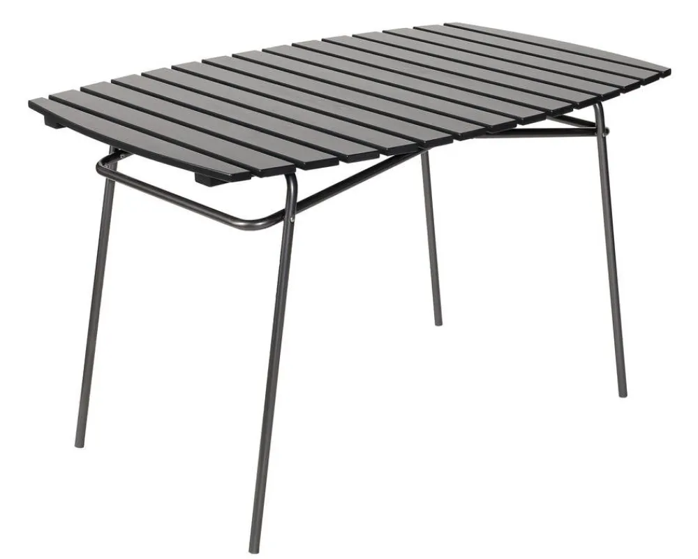 Kotimainen musta Retro pöytä. Runko tummanharmaa pulverimaalattu teräs. Kokoontaitettava.Lisää tietojaAvainlippu-tu…