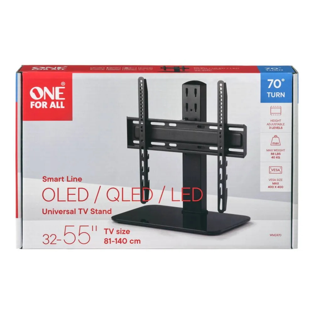 Tämä One For Allin kääntyvä ja korkeussäädettävä Smart TV -jalusta sopii 32-55 tuuman televisioille ja on yhtee…