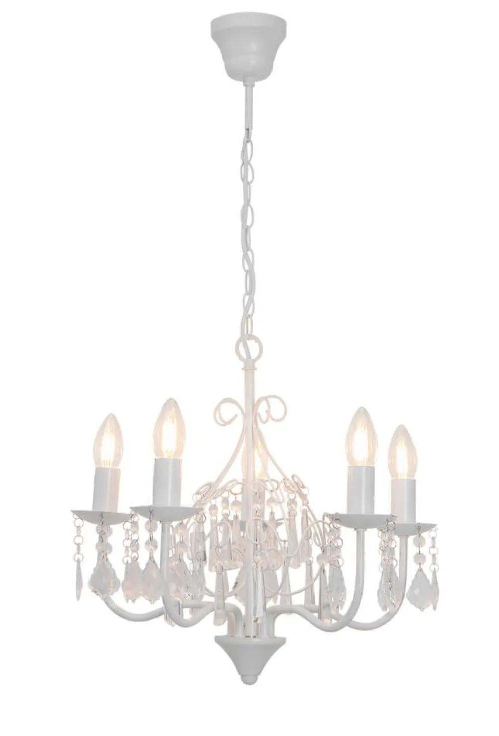 Romanttinen valkoinen kattokruunu lasisilla koristeilla.Lisää tietojaIP-luokka:IP20Kanta:E14Materiaali:metalli ja lasi…