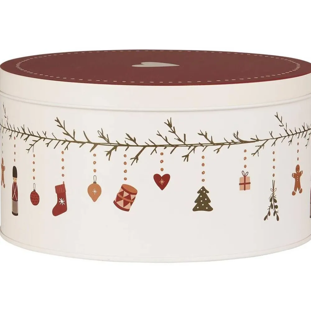 Tämä viehättävä pyöreä purkki tuo joulun taian kotiisi! Purkin sivua koristaa kaunis havukranssi, josta roikkuu e…