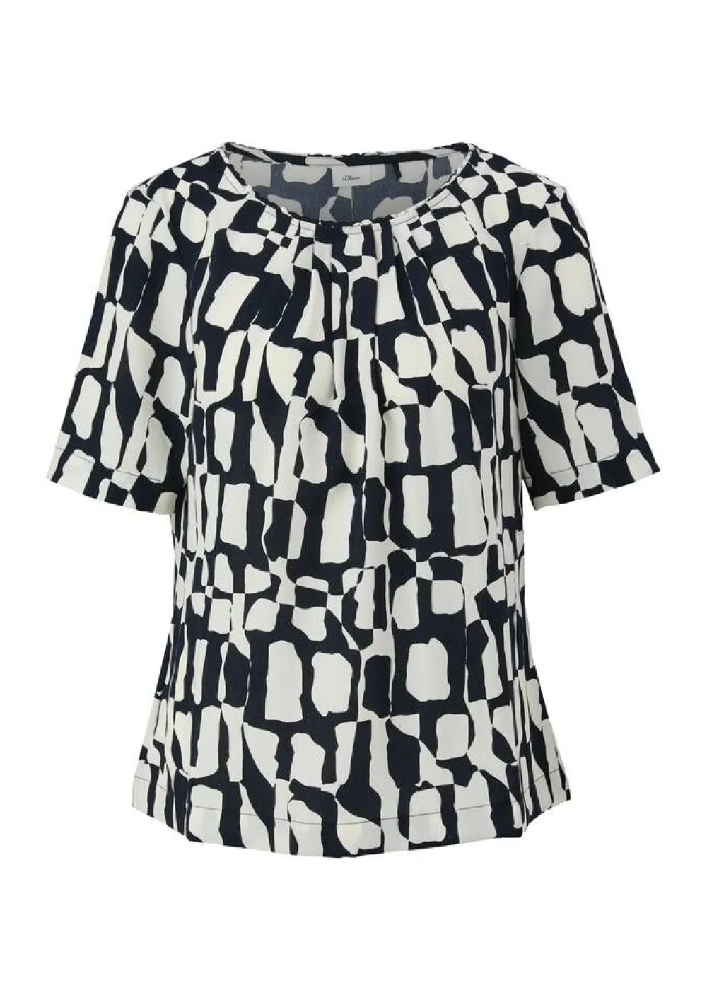 Lyhythihainen pusero ajattomalla mustavalkoisella kuosilla. Pääntiellä on tyylikkäät laskokset.Lisää tietojaHoito…