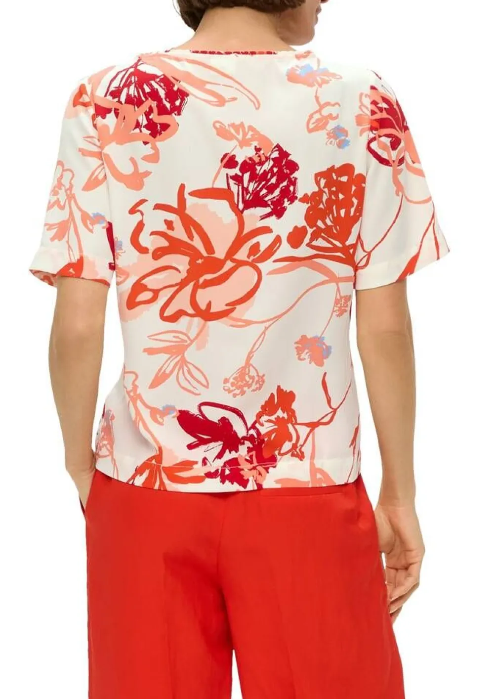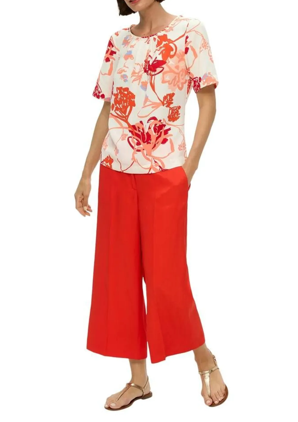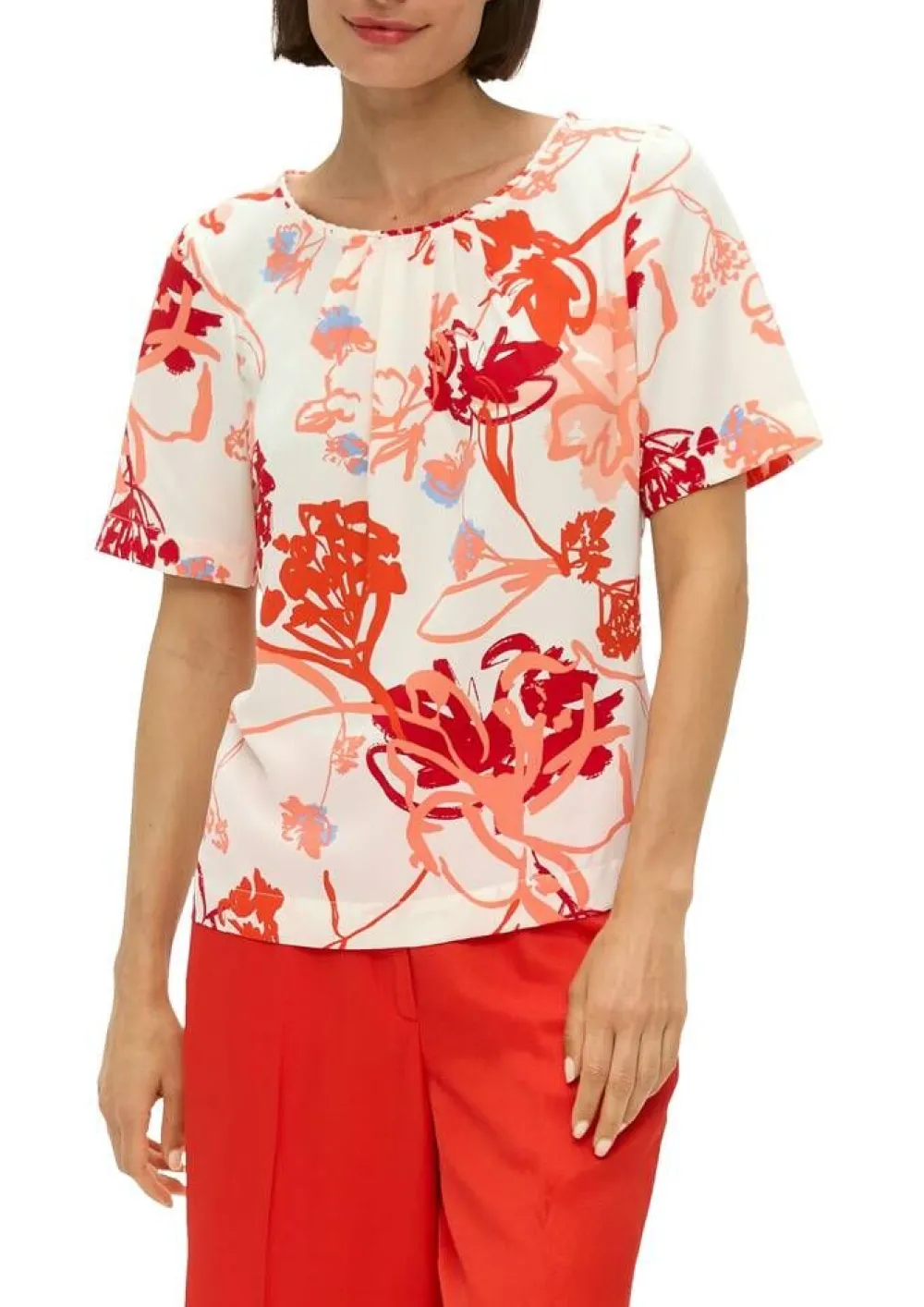 Kaunis printtipusero pyöreällä pääntiellä ja lyhyillä hihoilla. Pääntiellä on tyylikkäät laskokset.Lisää t…