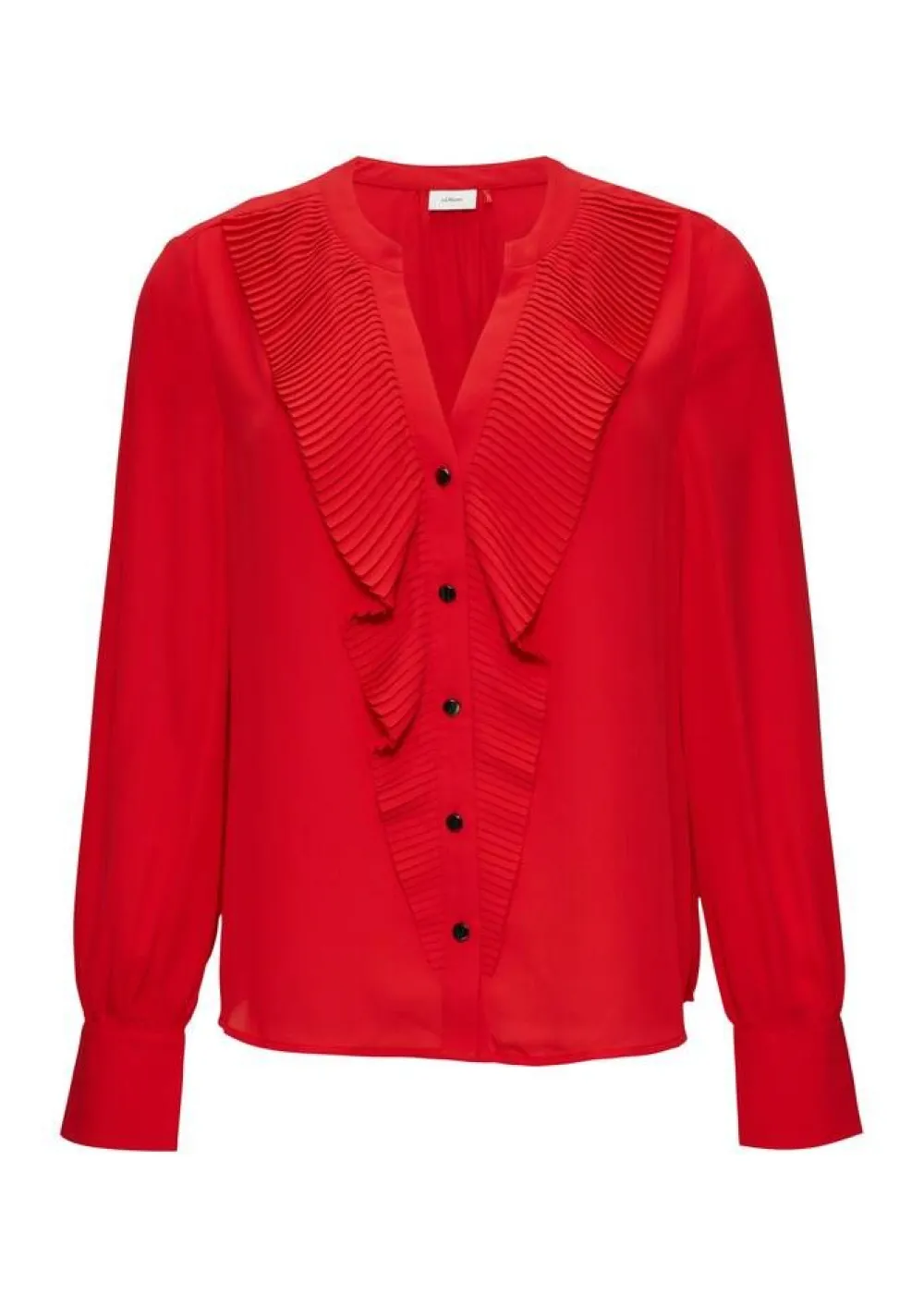 Näyttävä pusero koristeellisilla pliseeratulla frillalla ja pitkillä hihoilla. Edessä on napit.Lisää tietojaMater…
