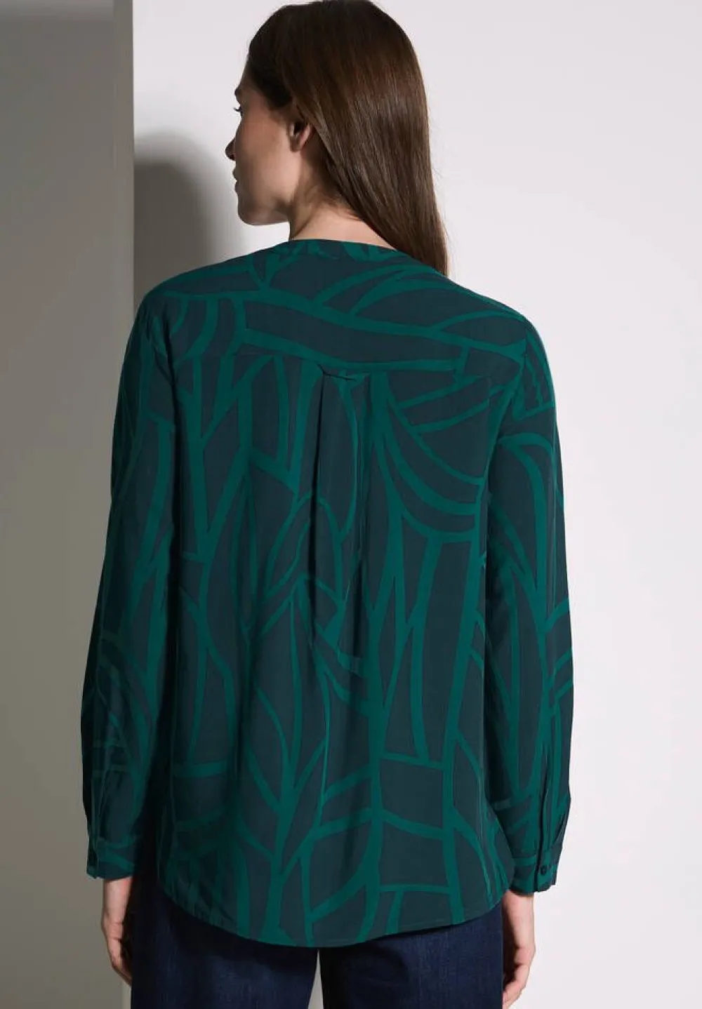 Näyttävä printtipusero klassisella v-pääntiellä, jossa on yksi nappi. Myös hihansuissa on avattavat napit. Helma …