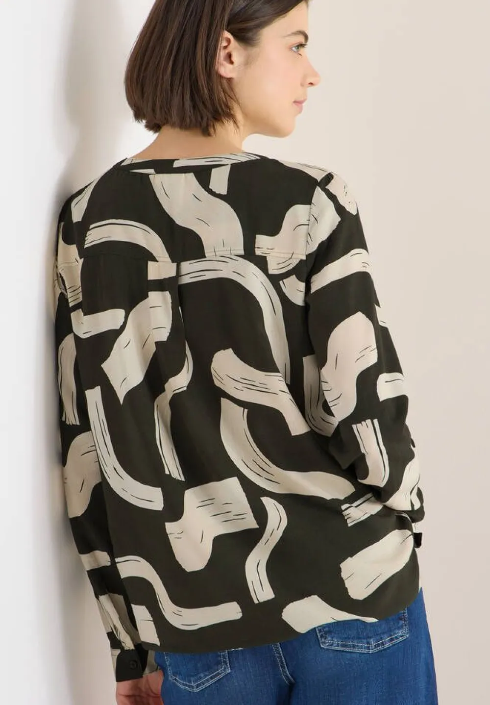 Kuviollinen pusero v-pääntiellä ja pitkillä hihoilla.Lisää tietojaMateriaali:100% viskoosi