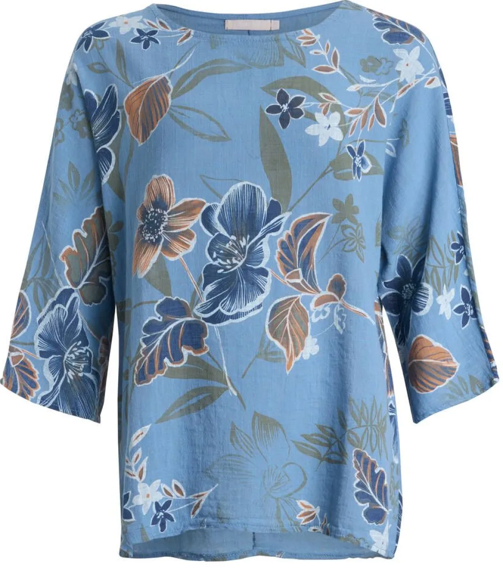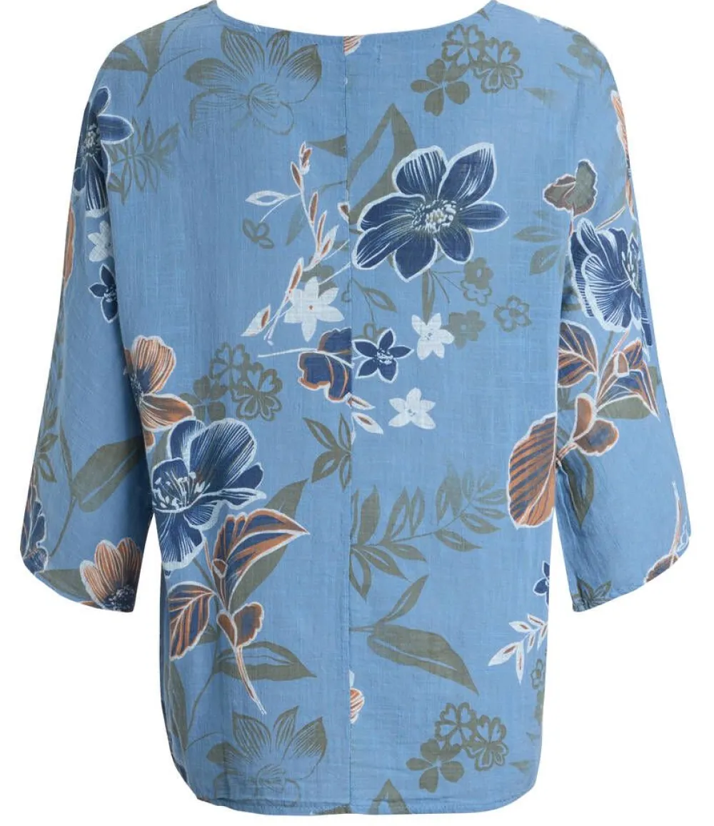 Kesäinen kukka/-lehtikuviollinen pusero ilmavaa puuvillaa. Paidassa on väljät 3/4-hihat.Lisää tietojaRinnanympärys…