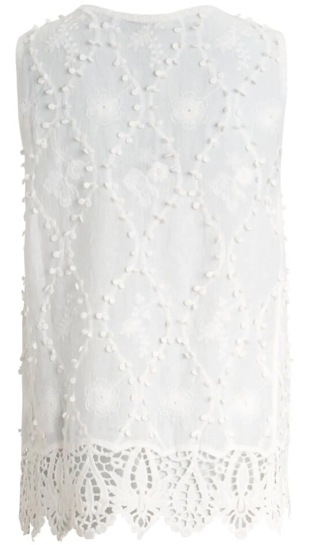 Ihana kokovalkoinen hihaton kukkakirjailtu pitsipusero kevyttä puuvillaa.Lisää tietojaRinnanympärys (koko S): 94 cmV…