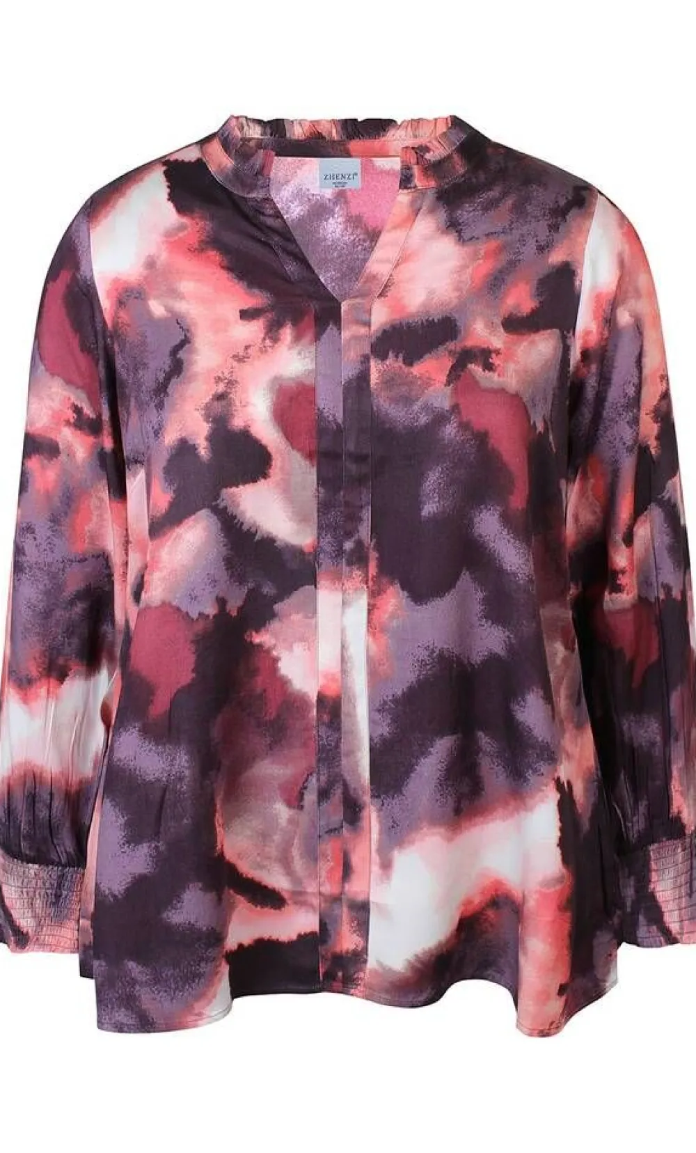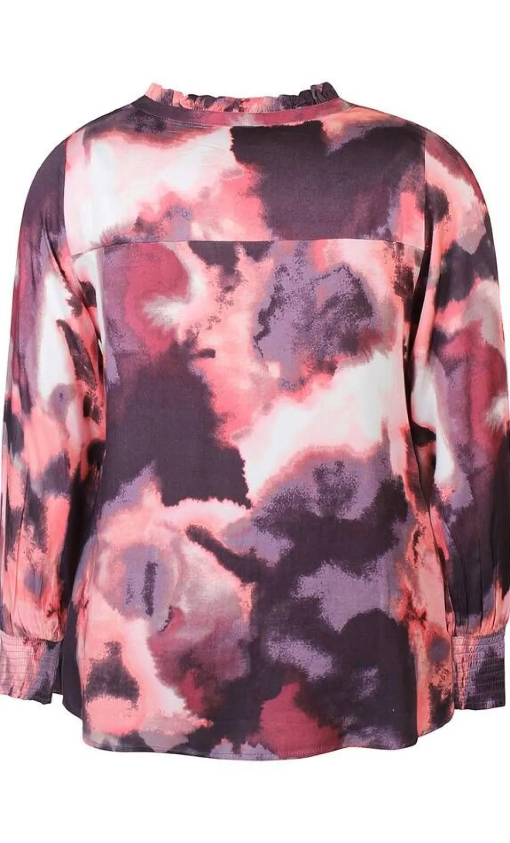 Näyttävä monivärinen pitkähihainen printtipusero, jossa on rypytykset pääntiellä ja kevyesti pussimaiset hihat.L…