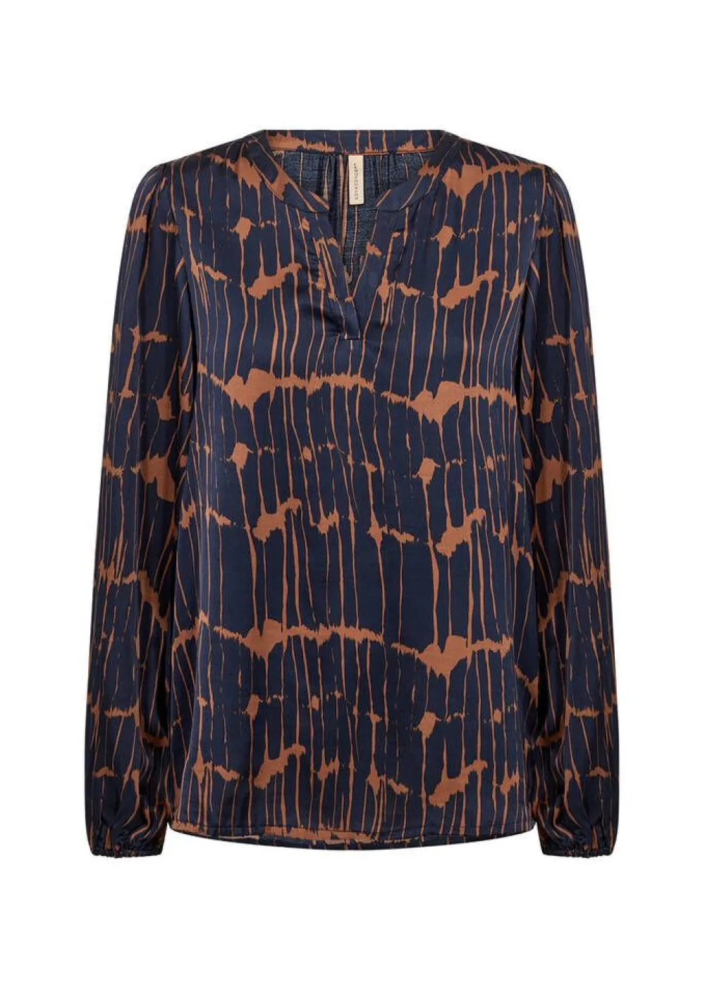 Tyylikäs ja kevyt pitkähihainen printtipusero naisellisella V-pääntiellä. Kauniisti laskeutuva materiaali tuntuu pe…