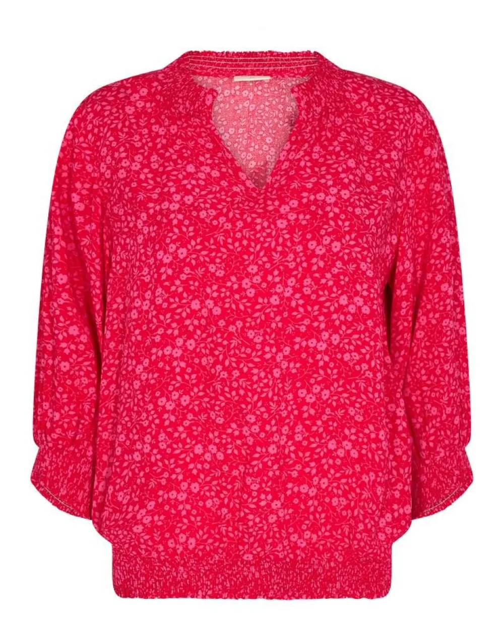 Naisten kukkakuosinen pusero v-pääntiellä. Puserossa on hihansuissa ja helmassa kuminauha.Lisää tietojaHoito-ohje:V…