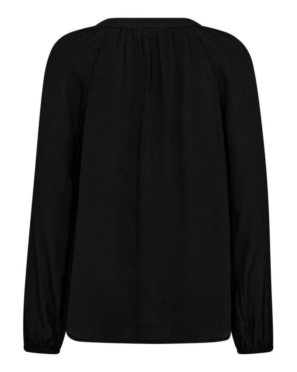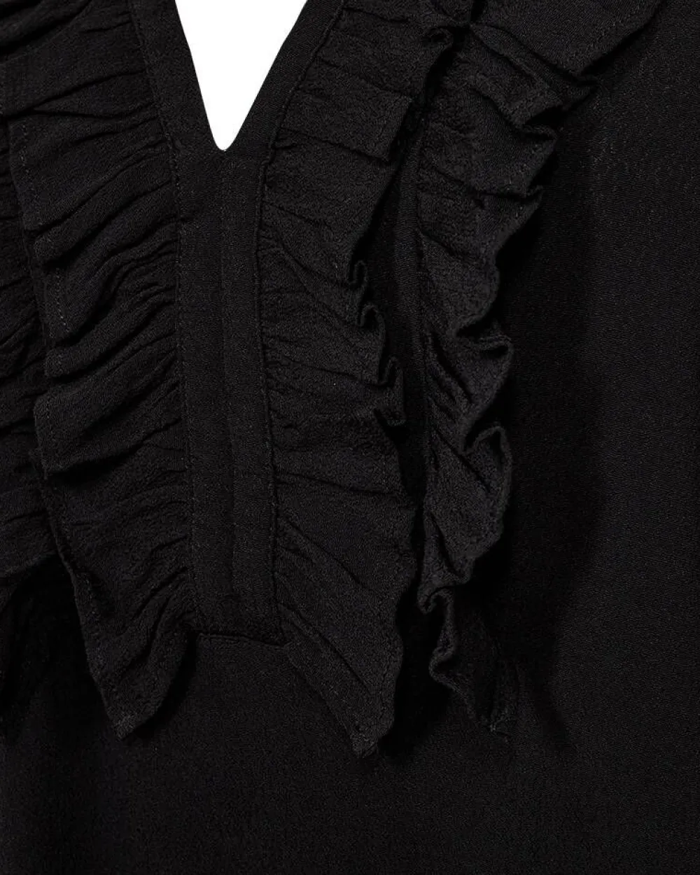 Näyttävä yksivärinen pusero röyhelöillä ja imartelevalla v-pääntiellä. Hihansuissa on joustavat kuminauhat, jo…