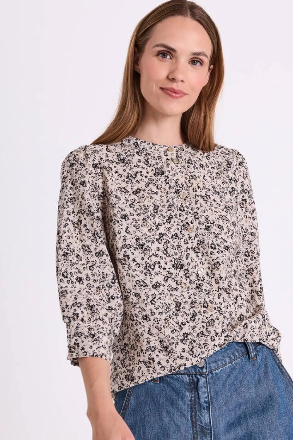 Kevyt ja kauniisti laskeutuva kukkakuosinen paita, joka on valmistettu miellyttävästä viskoosisekoitteesta. Etupuolen…