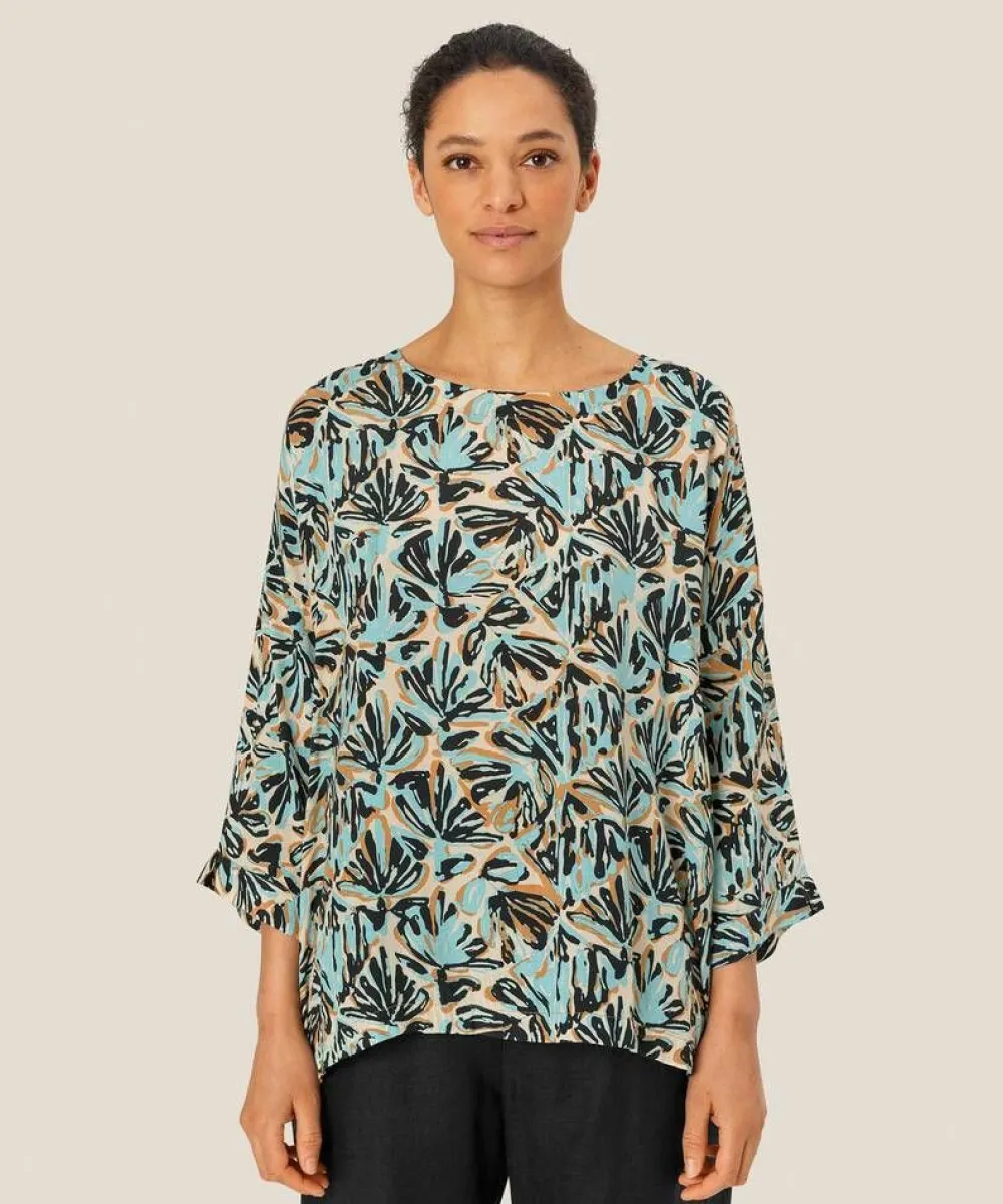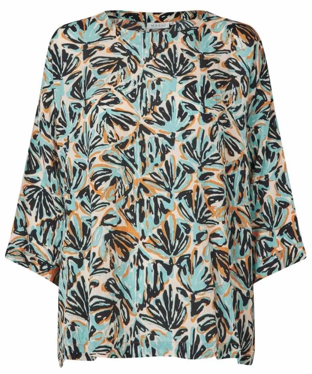 Kesäinen väljän mallinen pusero värikkäällä kuosilla. 3/4 hihat.Lisää tietojaMateriaali:100% viskoosiValmistaja…