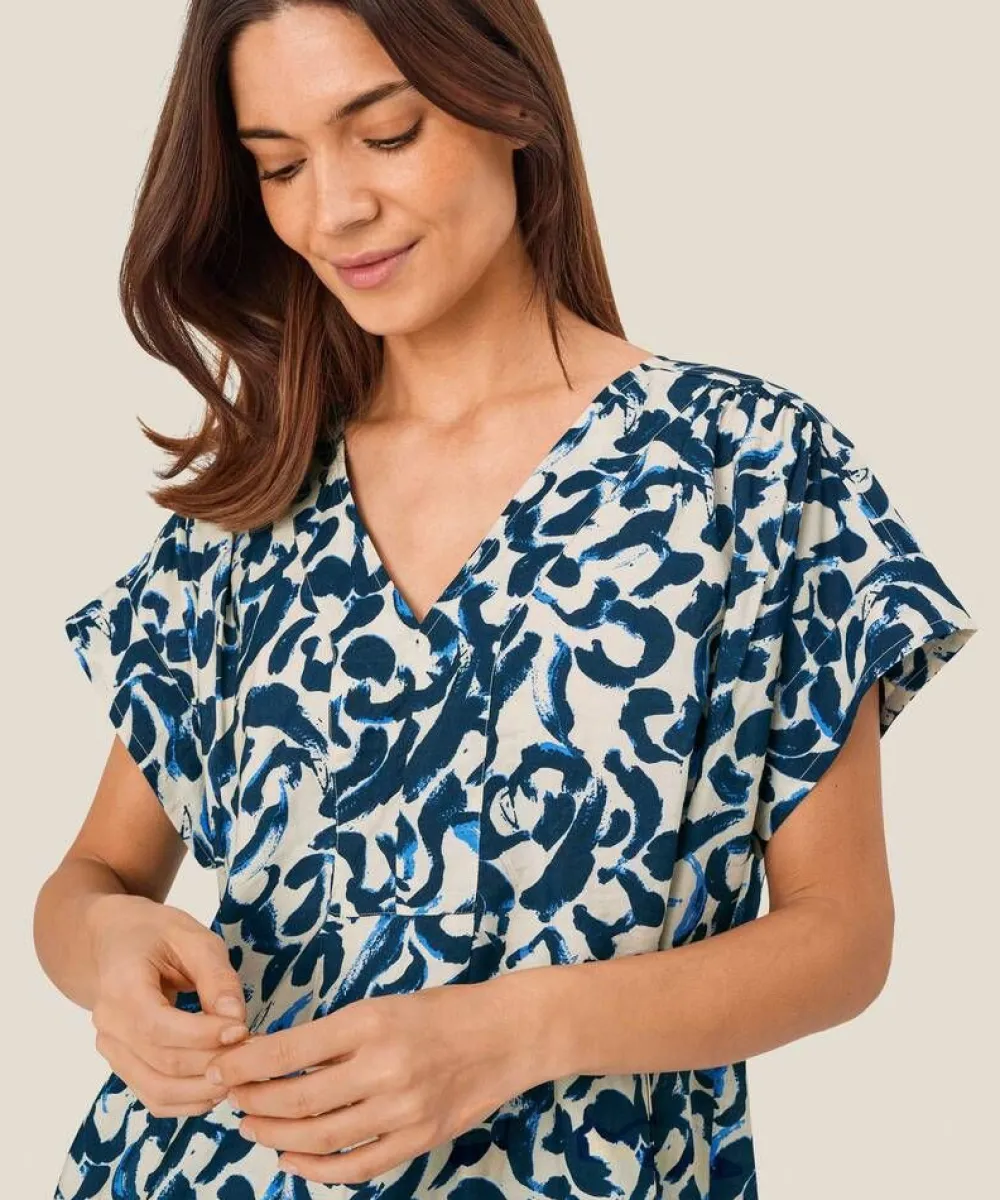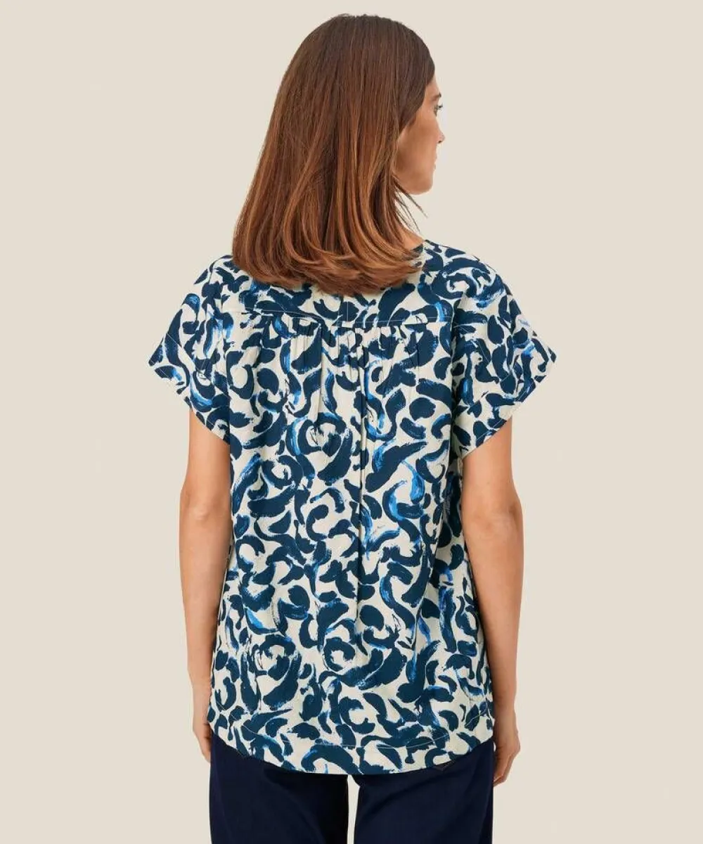Pehmeästä viskoosista valmistettu paita eläväisellä merestä inspiroitunuteella printillä. Naiselliset yksityiskoh…