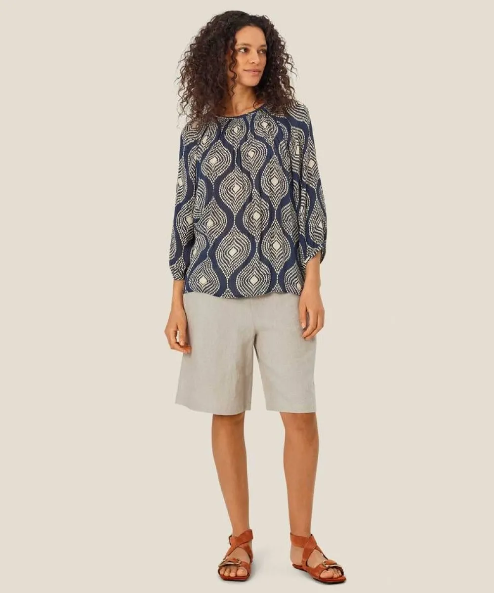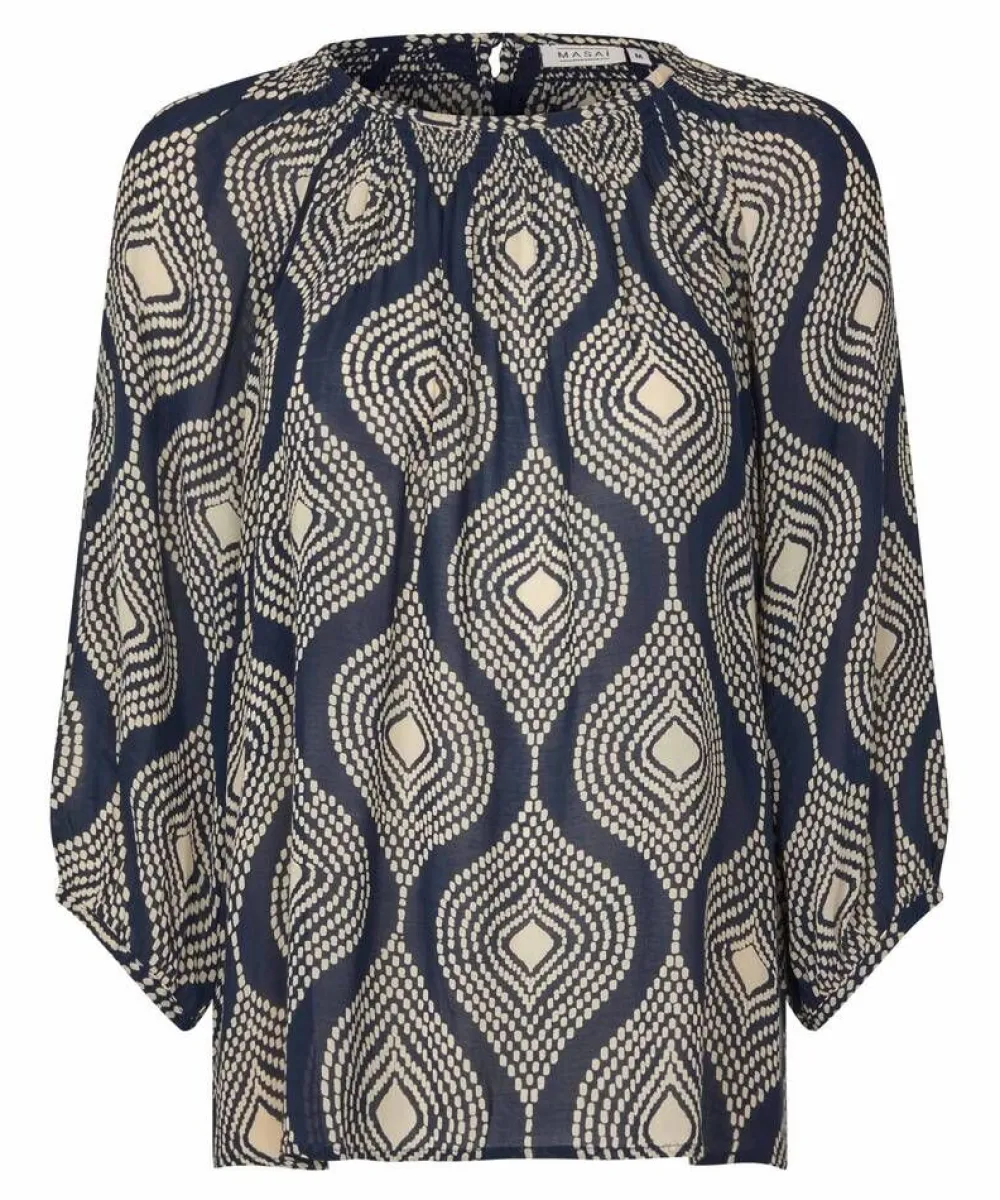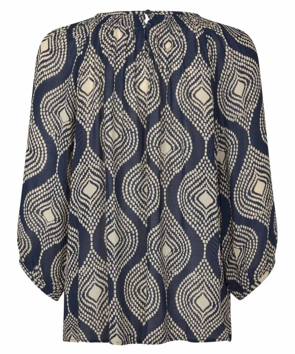Ihana kesäinen pusero väljällä istuvuudella ja suoralinjaisella leikkauksella. 3/4 hihat hienoisella pussimaisuudell…