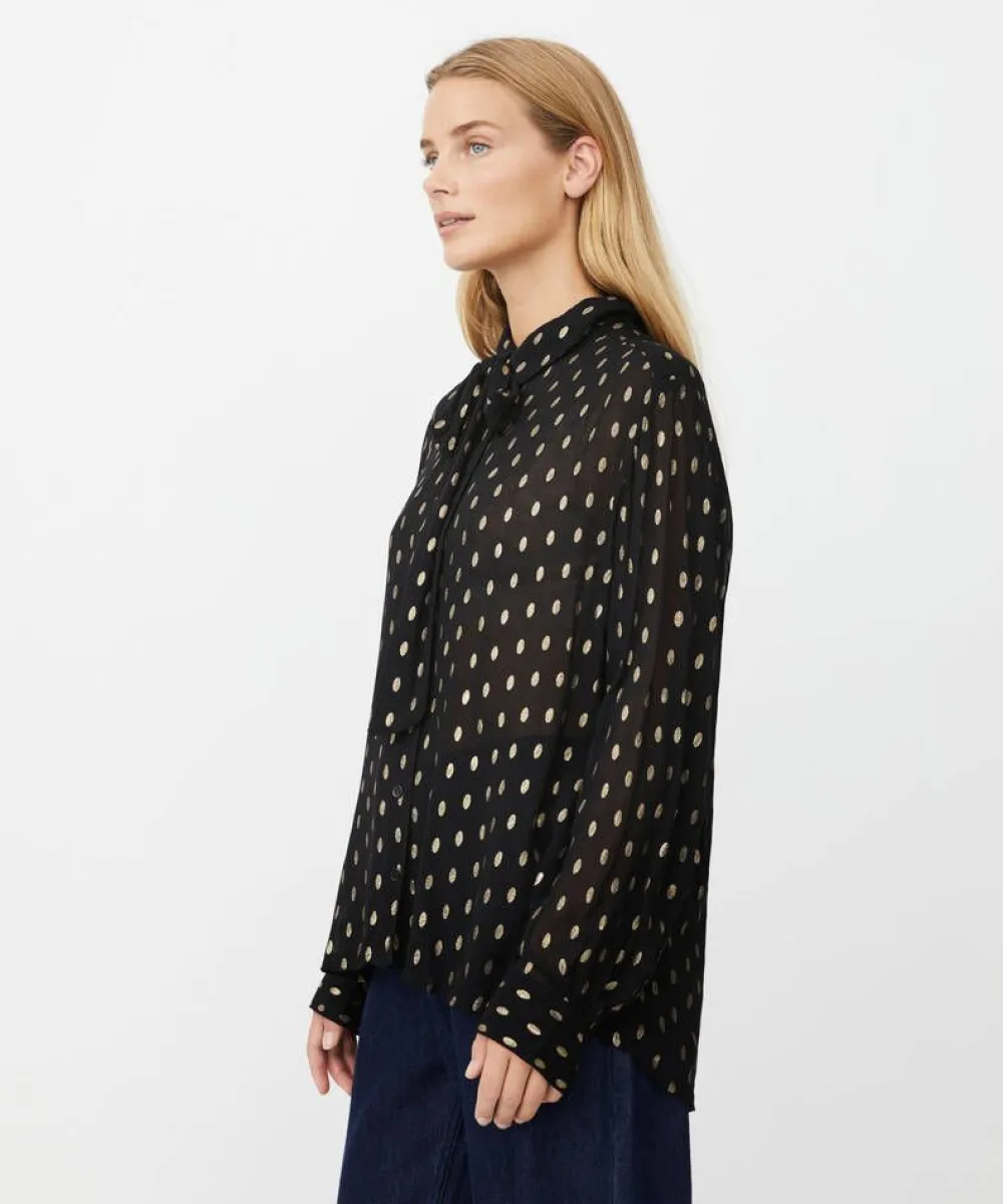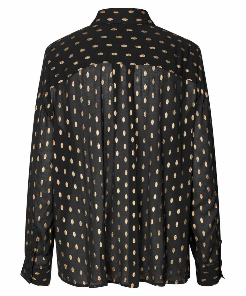 Huipputrendikäs kultatäpläinen pusero juhlakauteen, väljä A-linjainen malli. Puserossa on irrotettava rusetti.Lisä…