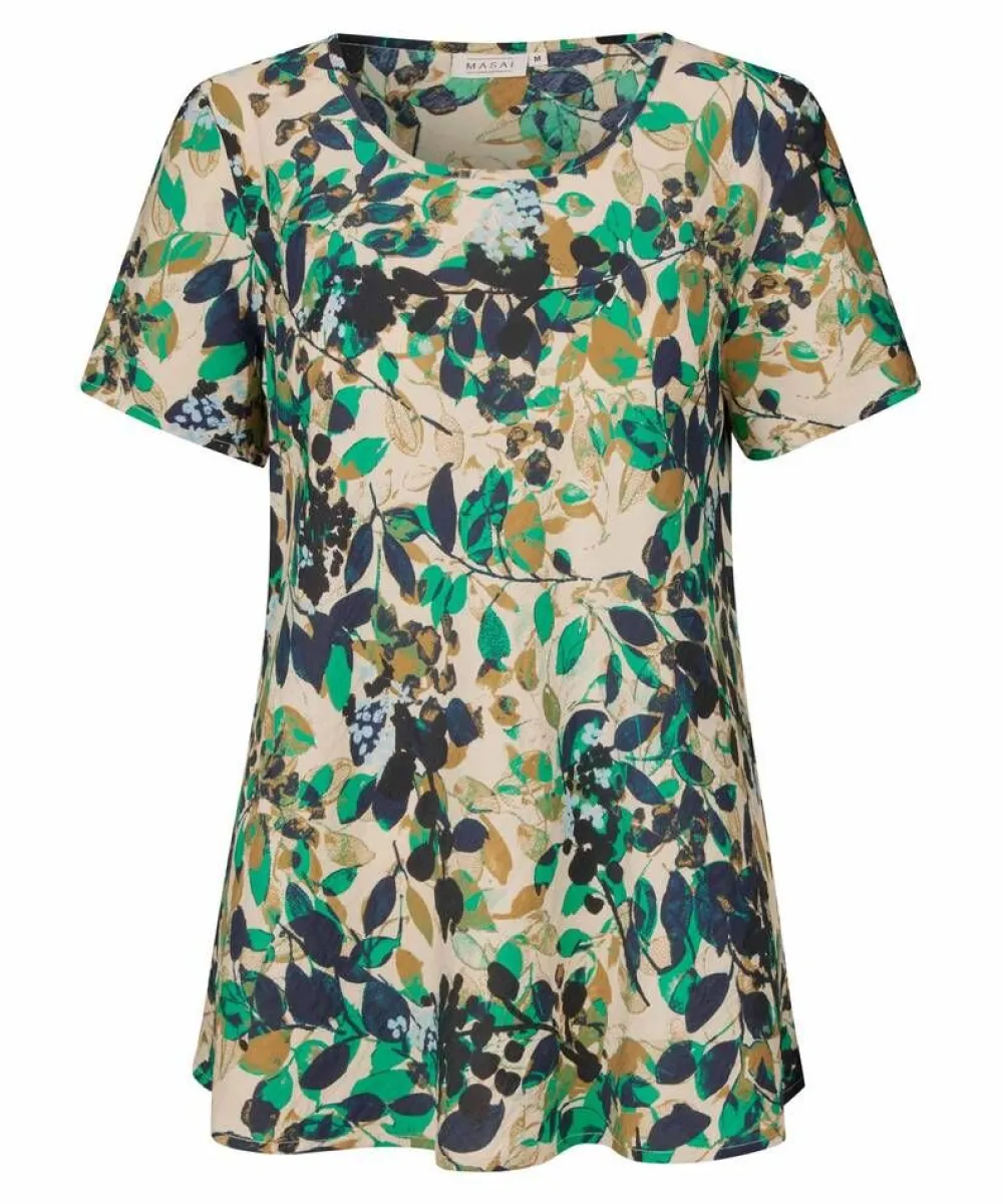 Lyhythihainen pusero lehtikuosilla ja levenevällä helmalla.Lisää tietojaHoito-ohje:Vesipesu 30Istuvuus:Regular fitMa…
