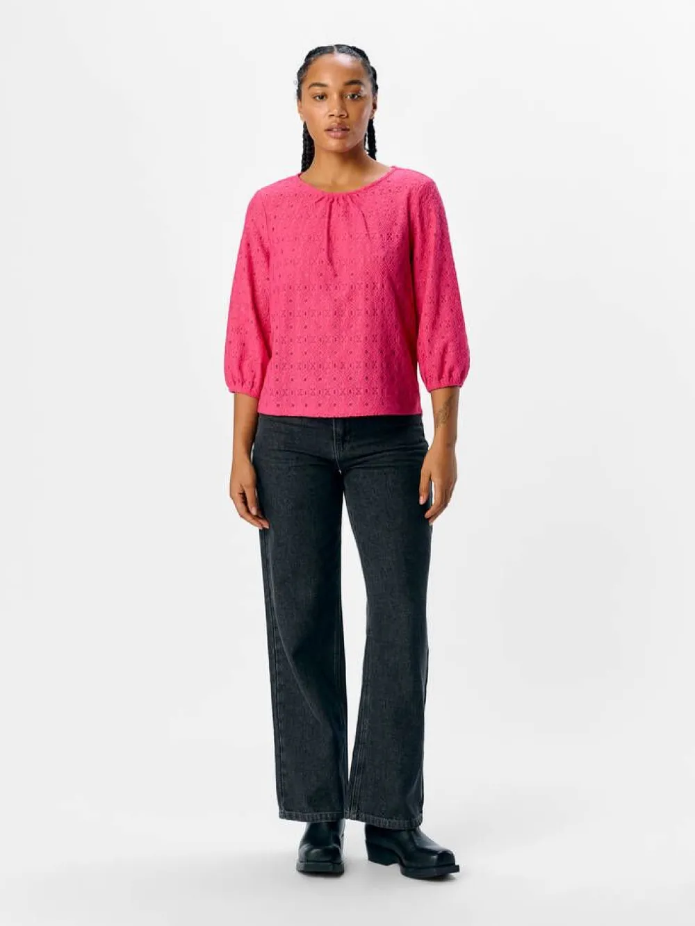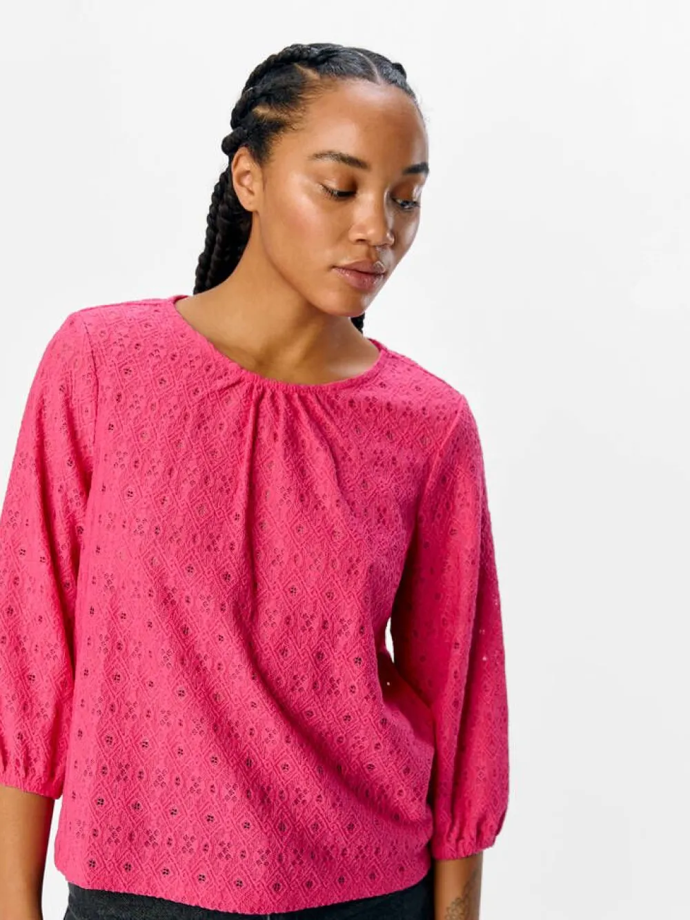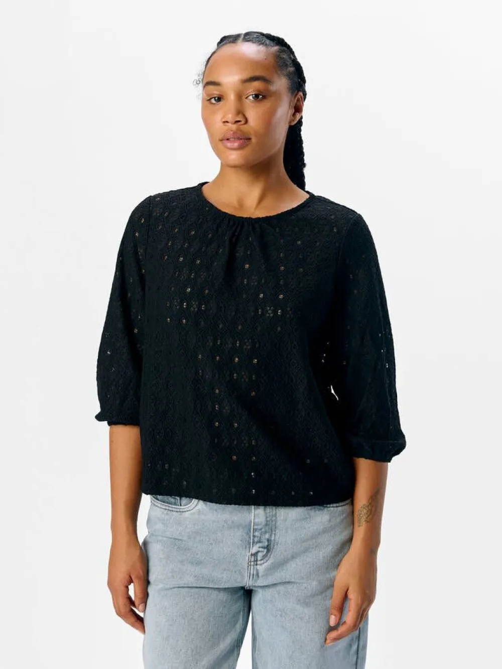 Joustava pusero 3/4-hihoilla ja kauniilla reikäkuvioidulla kankaalla.Lisää tietojaMateriaali:98% kierrätyspolyesteri…
