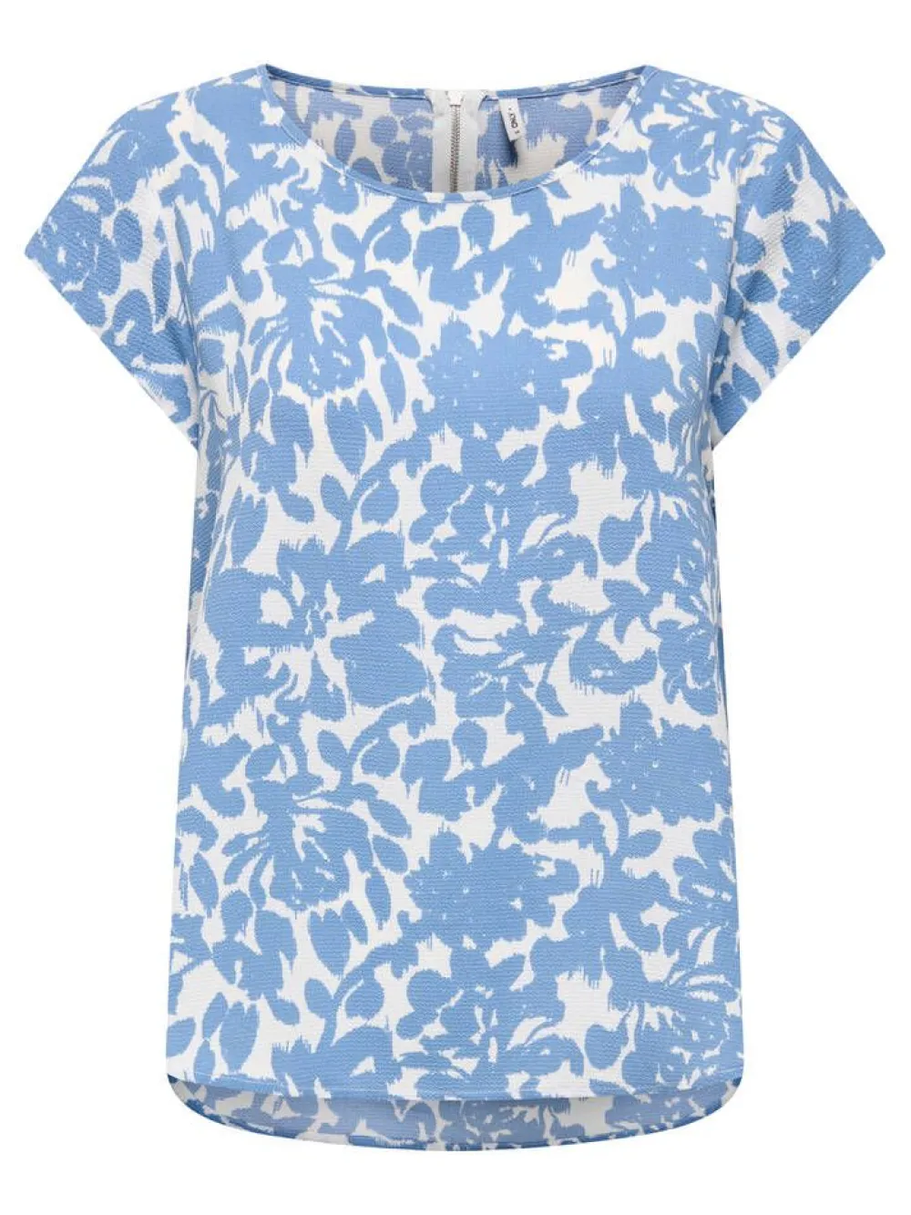 Tyylikäs lyhythihainen kukkakuosinen pusero, jossa on pyöreä pääntie ja niskapuolen vetoketjukiinnitys.Lisää tiet…