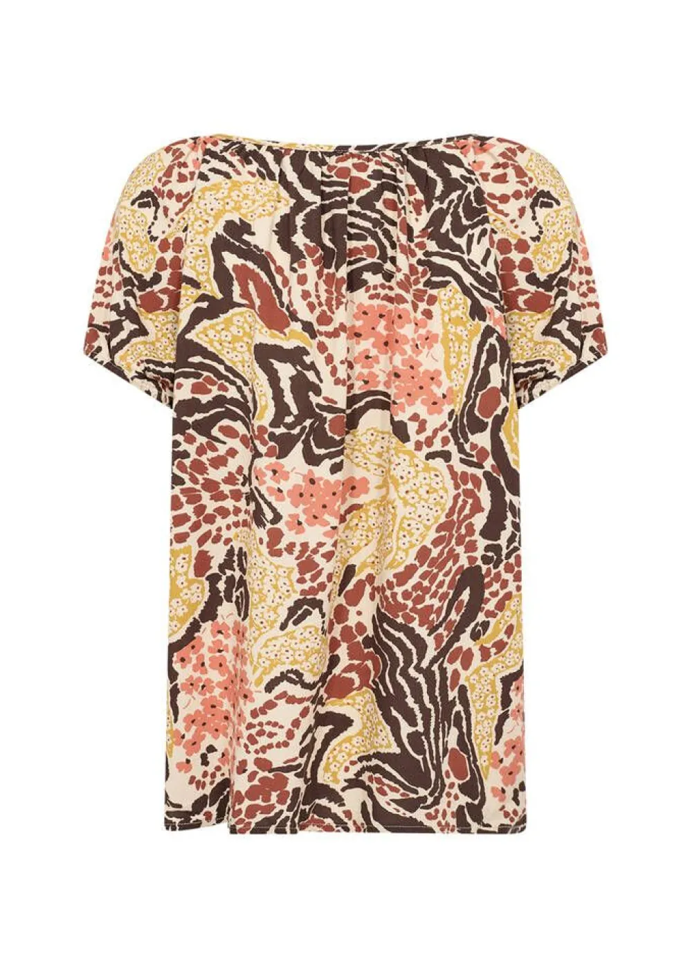Kevyt ja ilmava lyhythihainen pusero 100% LENZING™ ECOVERO™ -viskoosia. Puserossa on rento istuvuus, kaunis printtik…