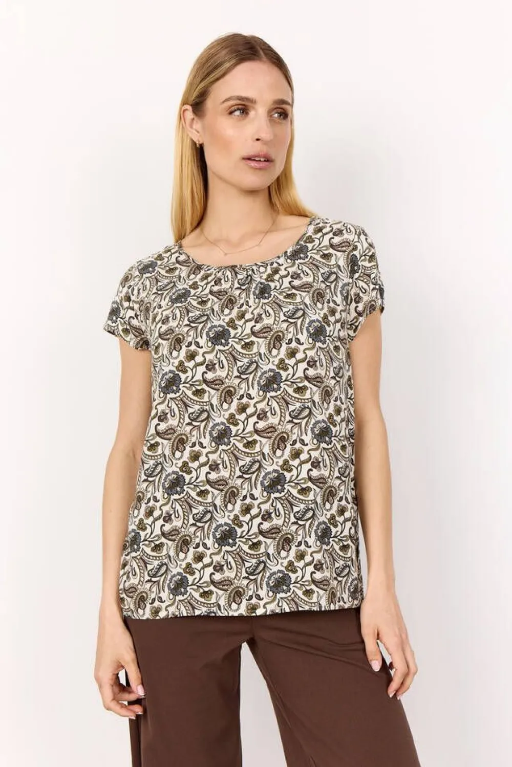 Lyhythihainen kuosillinen pusero.Lisää tietojaKeskitakapituus (koko S): 66cmMateriaali:100% LENZING™ ECOVERO™ visk…