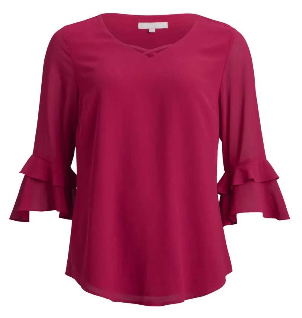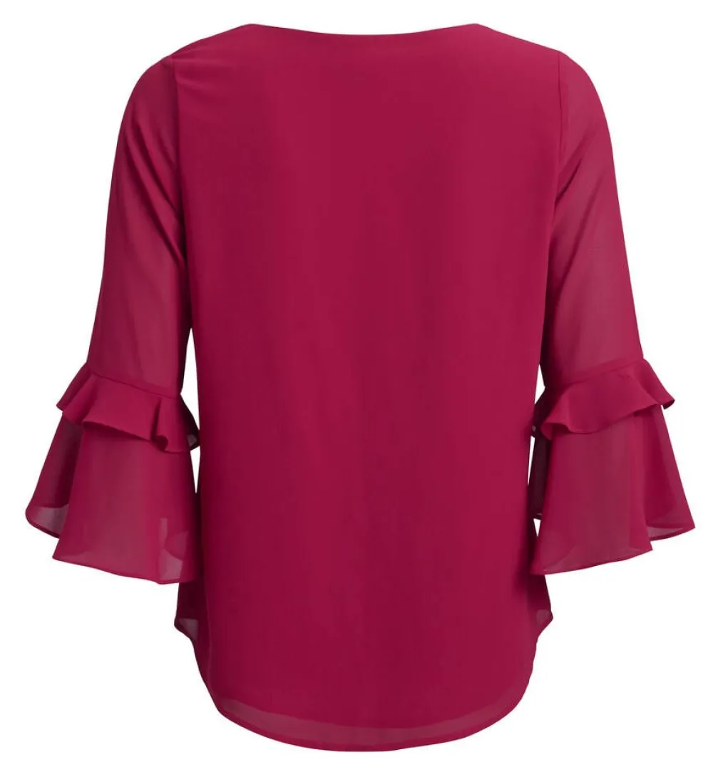 Tyylikäs sifonkipusero pääntien koristenauhoilla sekä näyttävillä trumpettihihoilla.Lisää tietojaRinnanympärys…