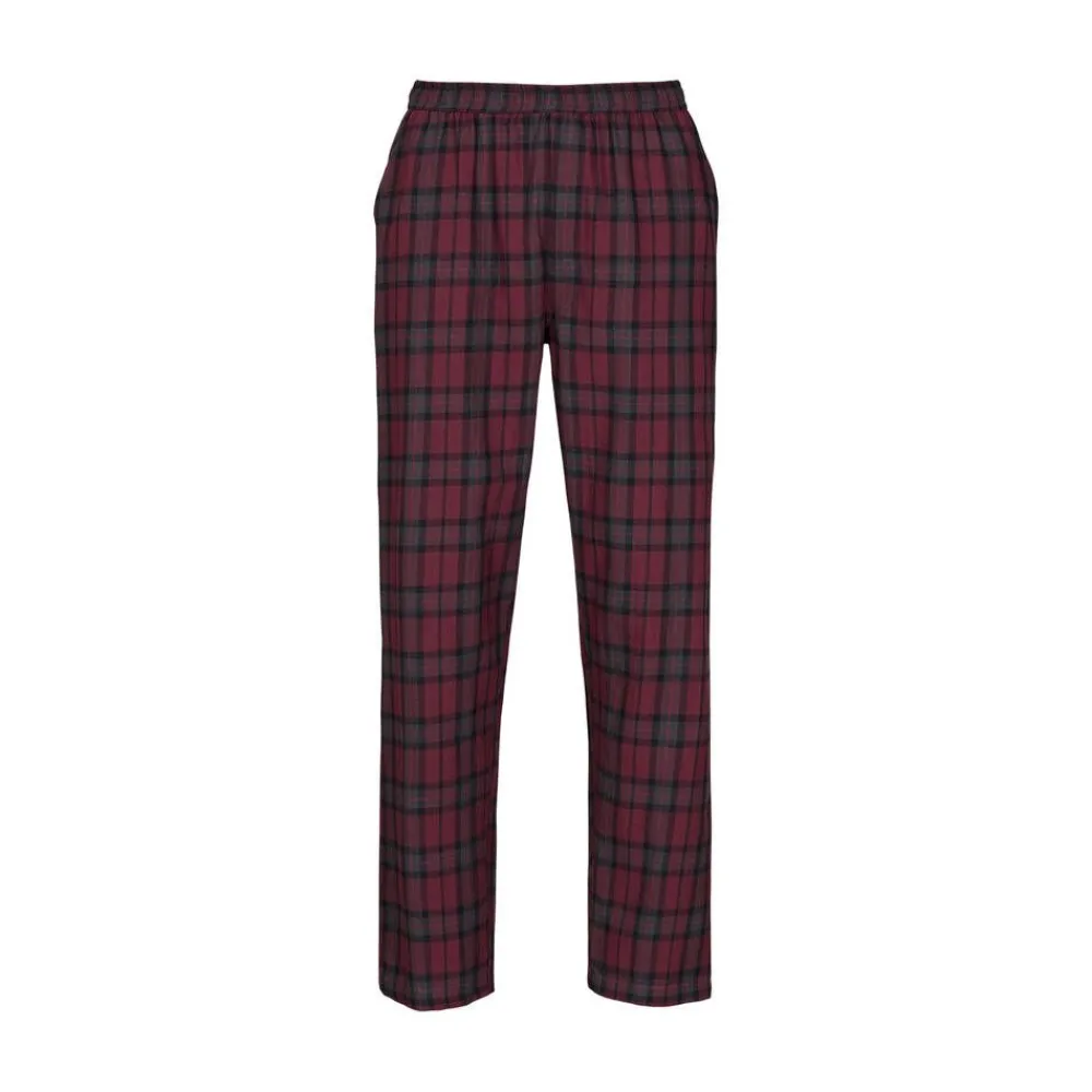 Klassisen tyylikäs flanellipyjama yksivärisellä t-paidalla. Ruudulliset housut, joissa on taskut ja kiristysnyörit. …