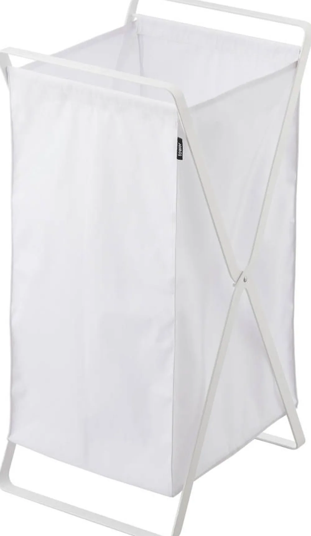 Tyylikkäässä Tower-pyykkikorissa on tilava polyesterista valmistettu kangaspussi ja tukeva kokoontaitettava teräsrun…