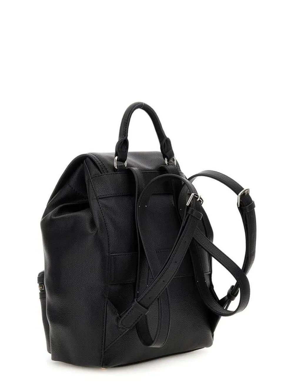 Tyylikäs keinonahkapintainen reppu kiristysnauhalla ja läppäkannella, jossa on magneettikiinnitys. Vetoketjulliset pi…