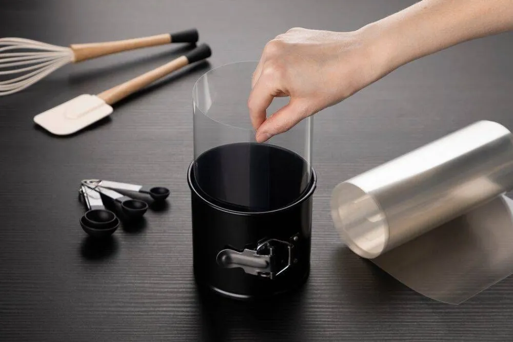 Reunakalvon avulla saat helposti siistit reunat hyydytettäviin kakkuihin. Vuoraa kakkuvuoka reunakalvolla, kaada kakkua…