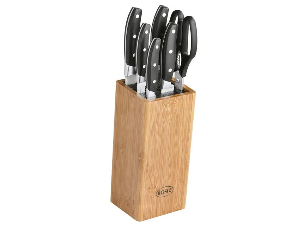 Bambusta valmistettu veitsiteline, jossa on helposti irrotettava ja helppo puhdistaa harjainsertti. Teline sisältää v…