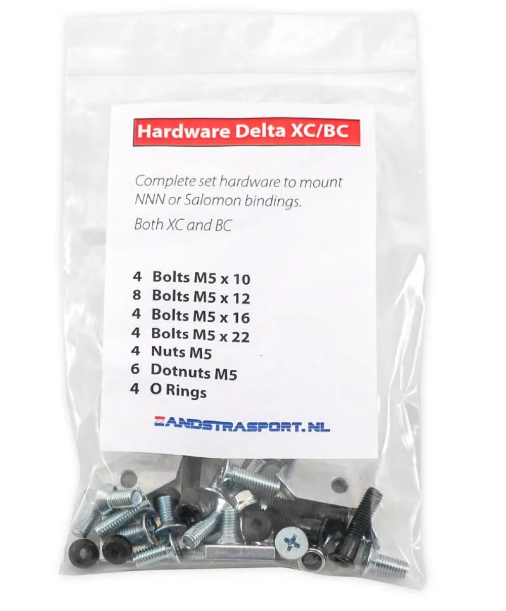 Ruuvisarja retkiluistimen siteen kiinnitykseen.