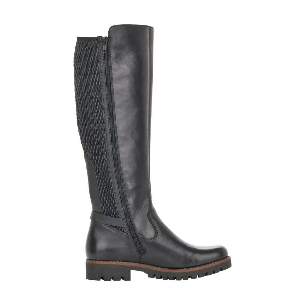 Tyylikkäät nahkapintaiset saappaat lämpimällä vuorilla. Varren joustava takaosa parantaa saappaiden istuvuutta. Vet…