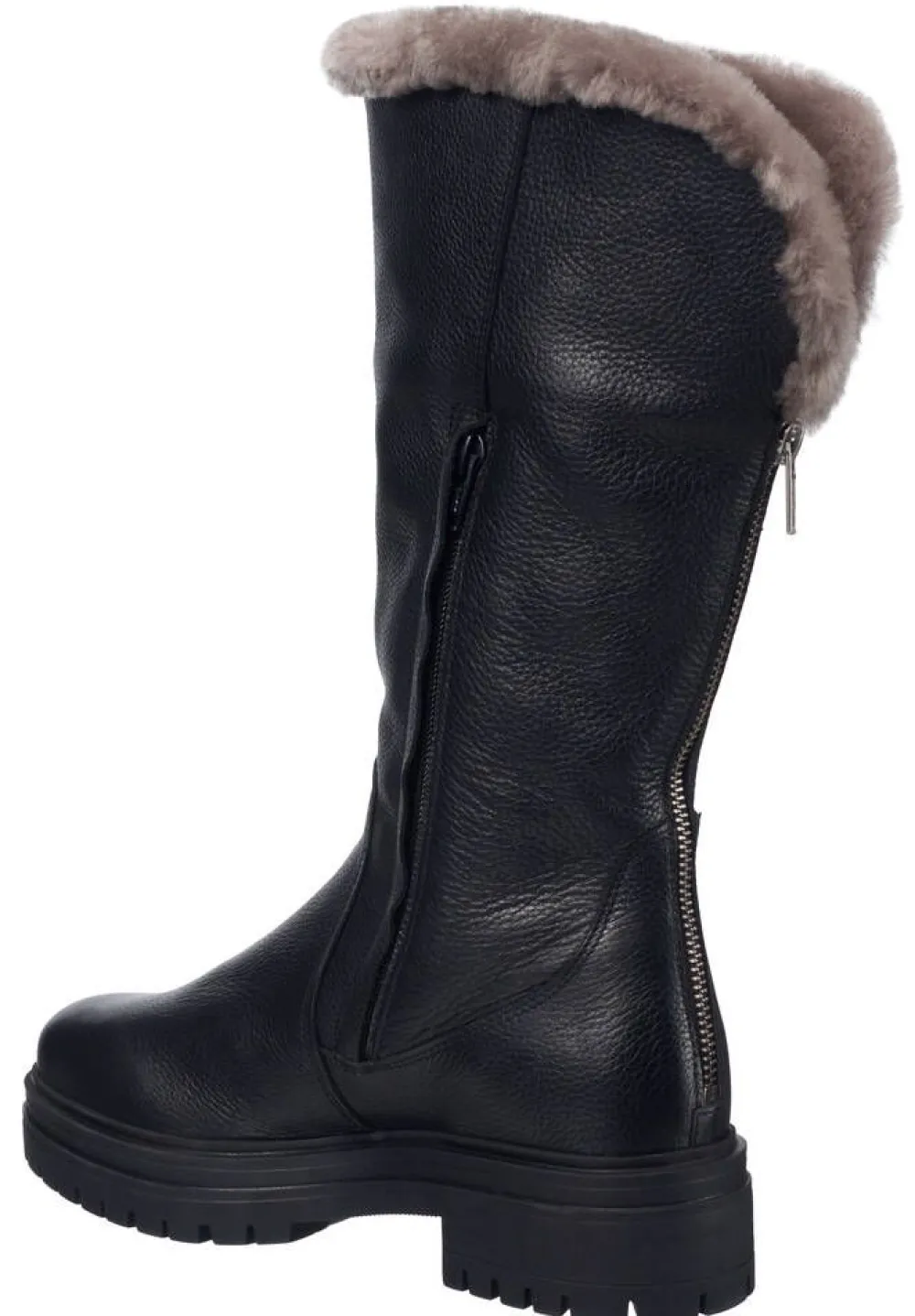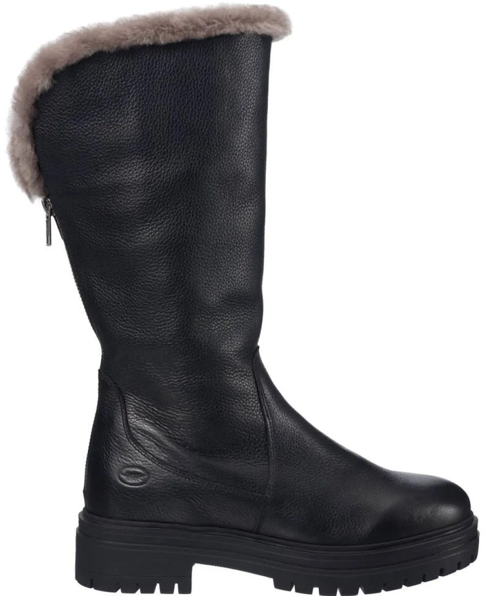 Tyylikkäät nahkasaappaat lämpimällä vuorella. Sivussa on näppärä vetoketjukiinnitys ja lisäksi takana vielä ko…
