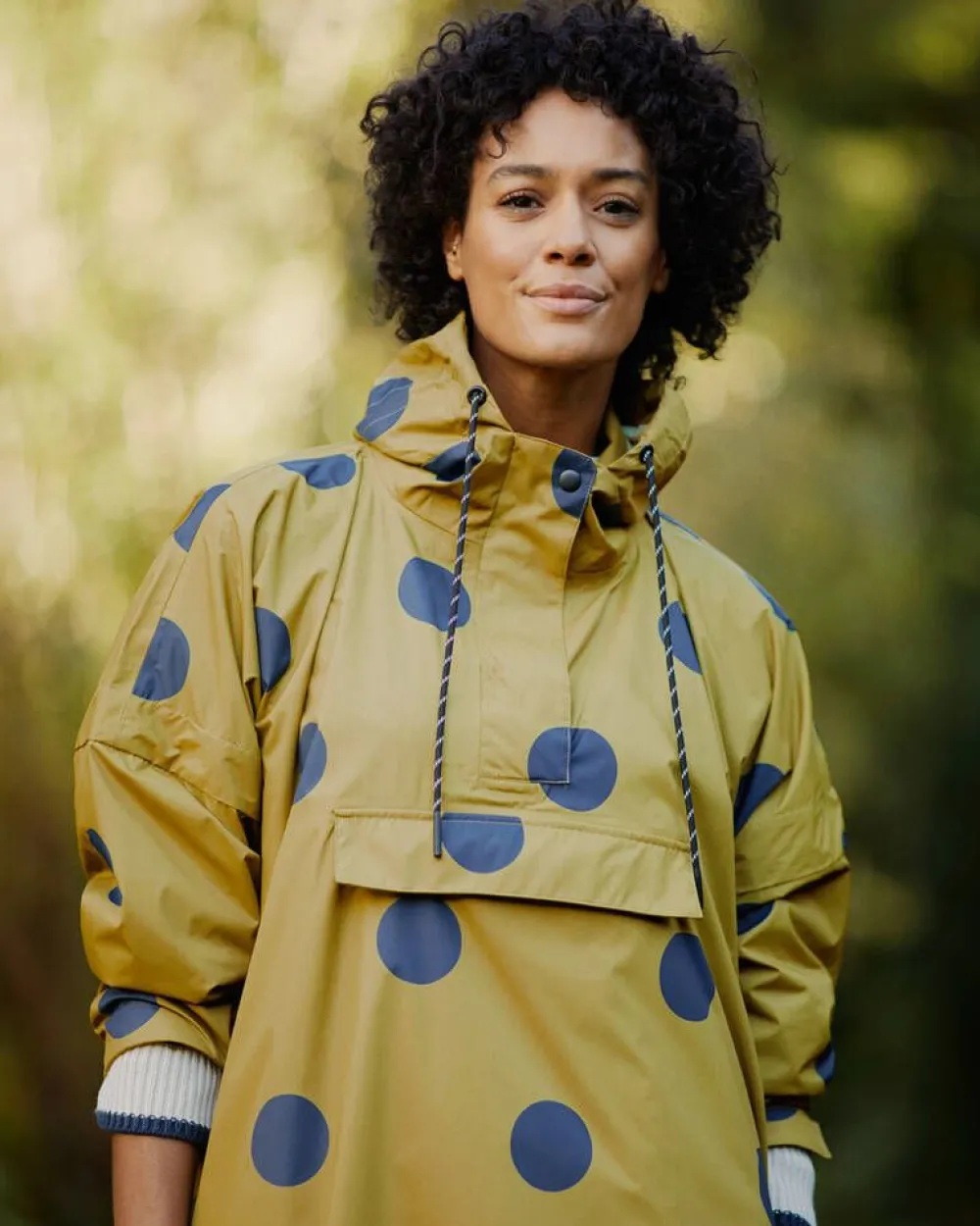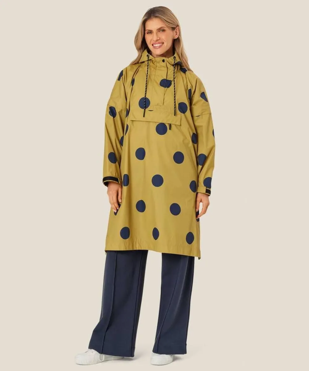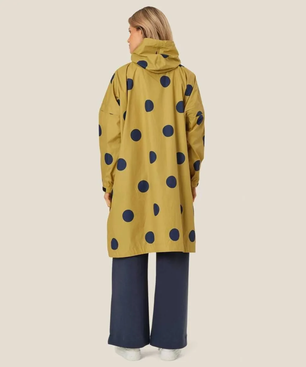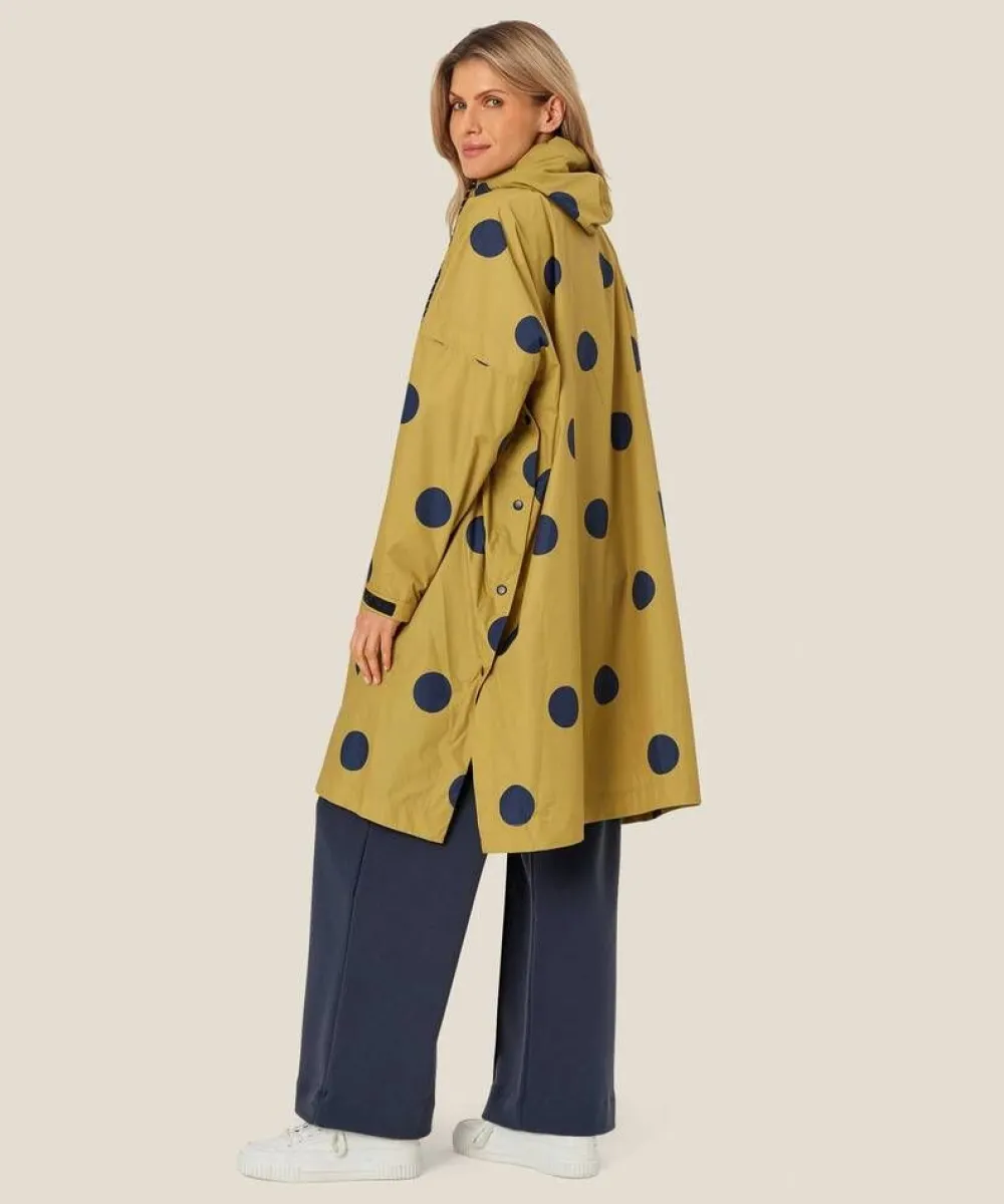 Leikkisä sadeanorakki. Väljä istuvuus ja polvipituinen malli. Hupussa on säätönarut. Sivusaumoissa on avattavat na…