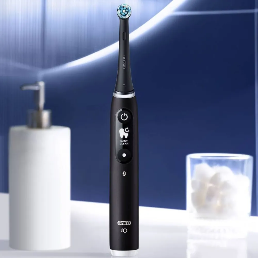 | Yhden myyntipakkauksen sisältö:1 iO6-runko-osa ja 2 vaihtoharjaa, 1 matkakotelo, 1 laturi, 2 vaihtoharjaan pidike |