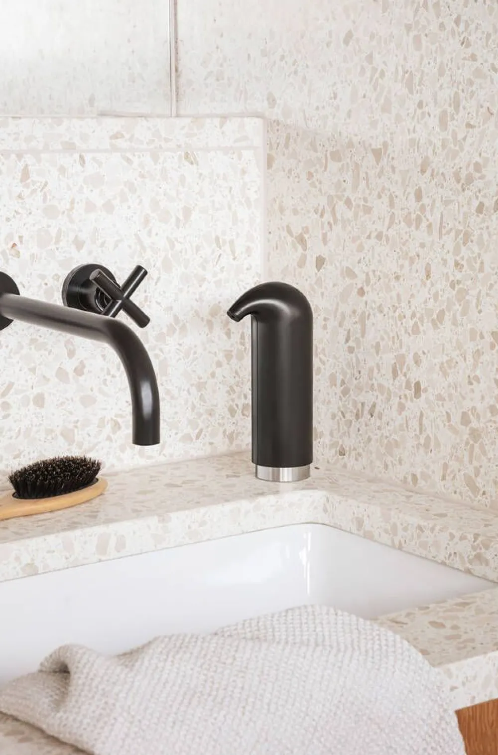 Kauniisti muotoiltu saippuapumppu on helppo täyttää ja puhdistaa. Sisällä on läpinäkyvä säiliö, mihin voi lait…