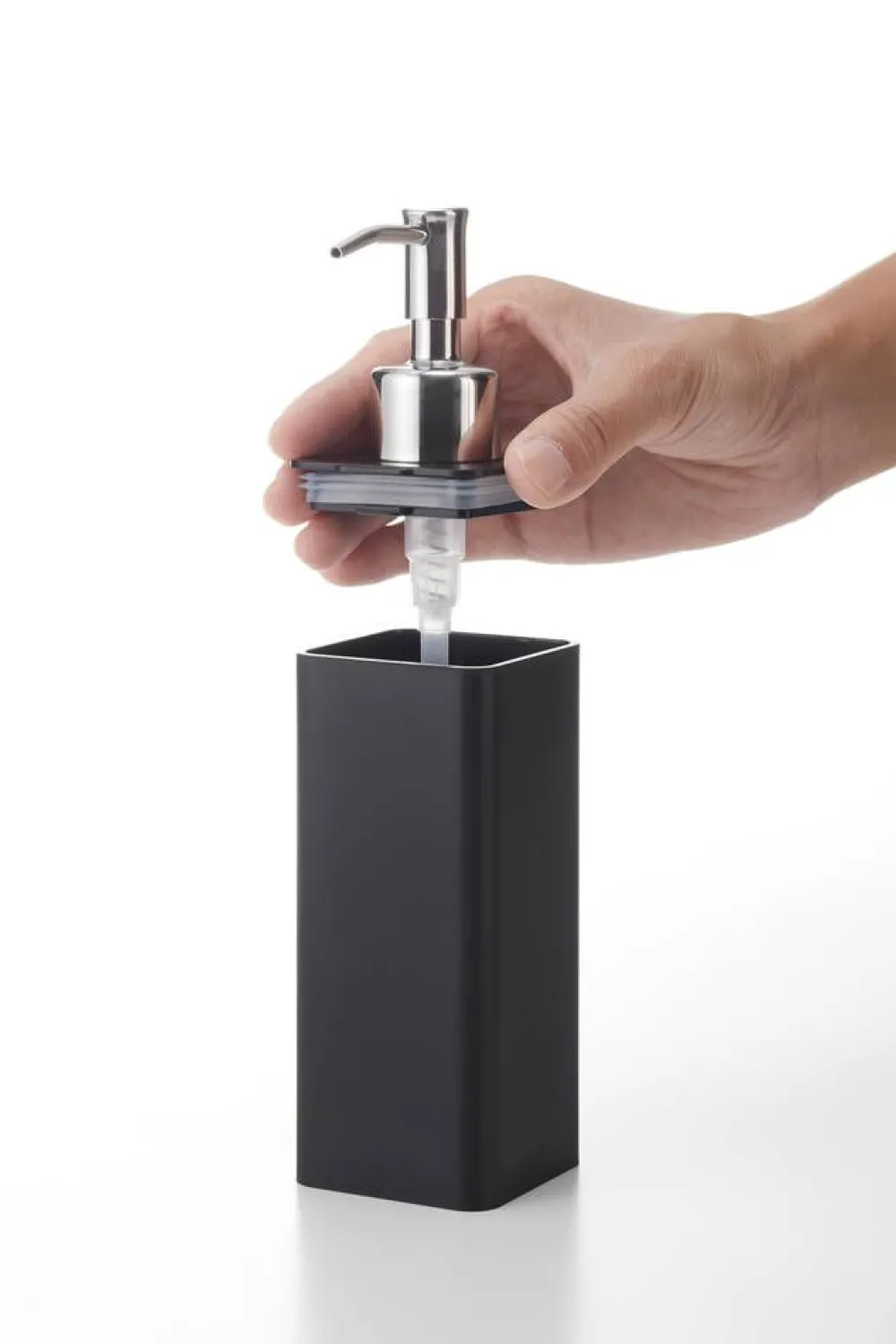 Tower-sarjan tyylikäs saippua-annostelija kiinnitetään seinään film hook -kiinnikkeillä. Film hook -kiinnikkeiden …