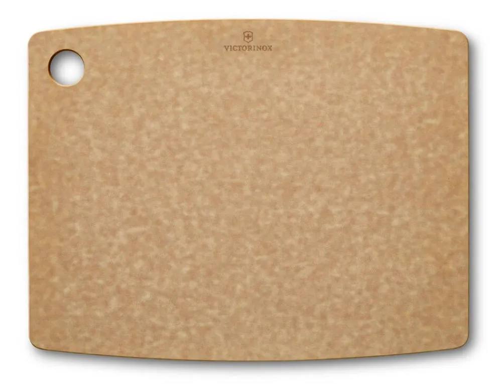 Victorinoxin Kitchen-leikkuulauta on valmistettu astianpesukoneen kestävästä, ympäristöystävällisestä paperikomposiittimateriaalista, joka luontaisen kimmoisuutensa (””natural bounce””) ansiosta on erittäin hellä veitsen terälle. Leikkuulauta kestää 175 °C:n kuumuuden, joten sitä voi käyttää myös pannunalusena. Ripustusreiästä leikkuulauta on kätevä ripustaa roikkumaan. Materiaali koostuu paperiarkeista, jotka prässätään yhteen tasaisen lämmön ja paineen avulla. Lopputuloksena on vankka, tasapainoinen ja kestävä materiaali. Tuotteet valmistetaan Epicureanin tehtaalla Wisconsinissa USA:ssa. Kaikki tuotantoprosessin aikana syntyvä jäte ja ylijäämämateriaali pyritään minimoimaan, käyttämään uudelleen tai kierrättämään aina kun mahdollista. Myös lämpö otetaan talteen ja käytetään varastotilojen lämmittämiseen talvella. Materiaalilla on mm. GREENGUARD- ja FSC® -sertifikaatit.