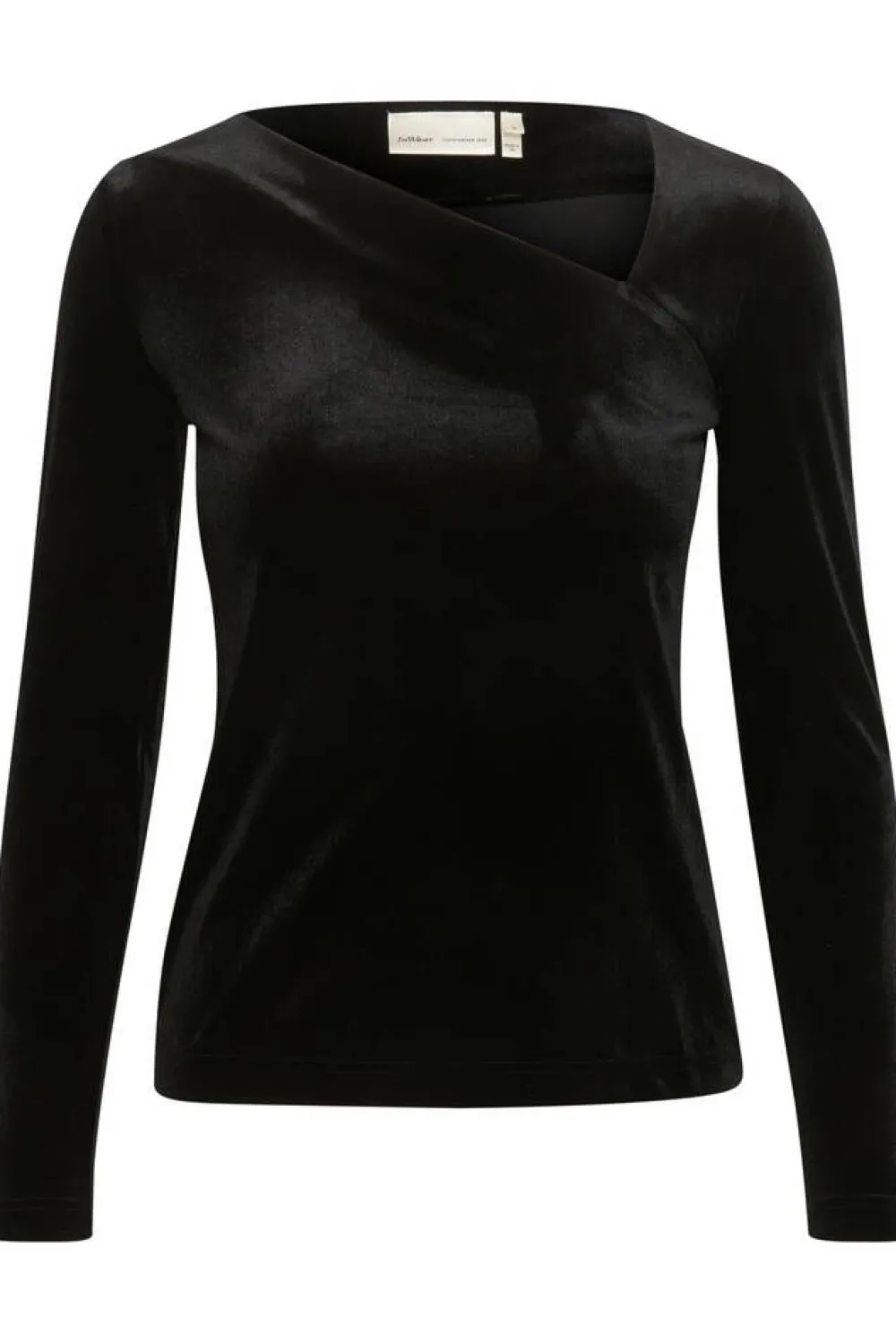 Tyylikäs samettipaita epäsymmetrisellä pääntiellä ja pitkillä hihoilla.Lisää tietojaHoito-ohje:Vesipesu 30Mater…