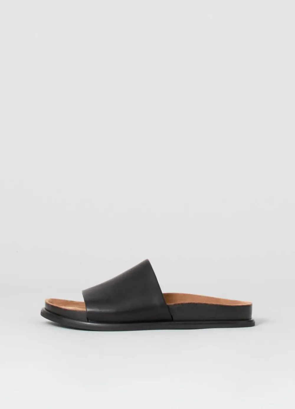 Minimalistinen ja ajaton Effie-footbed sandaali. Valmistettu mustasta nahasta, leveä nahkaremmi ja sisäpohja pehmeä…