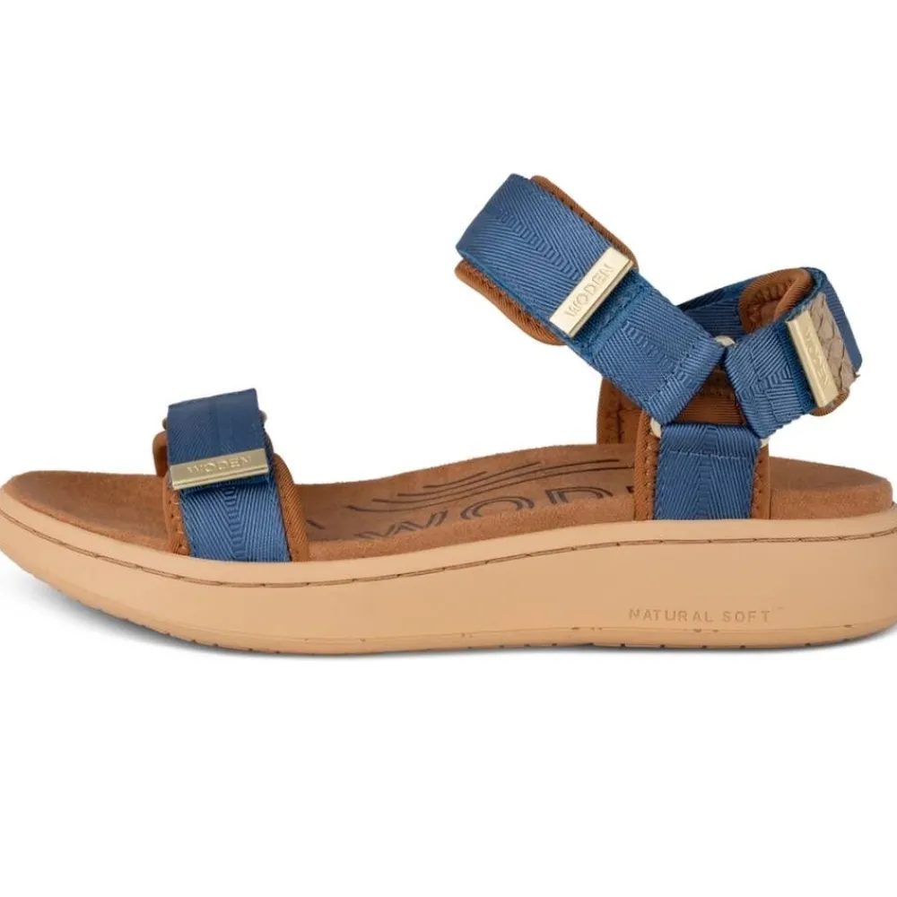 Klassiset sandaalit supertrendikkäällä muotoilulla. Denimin väriset tekstiiliremmit kolmella tarrakiinnityksellä ja…